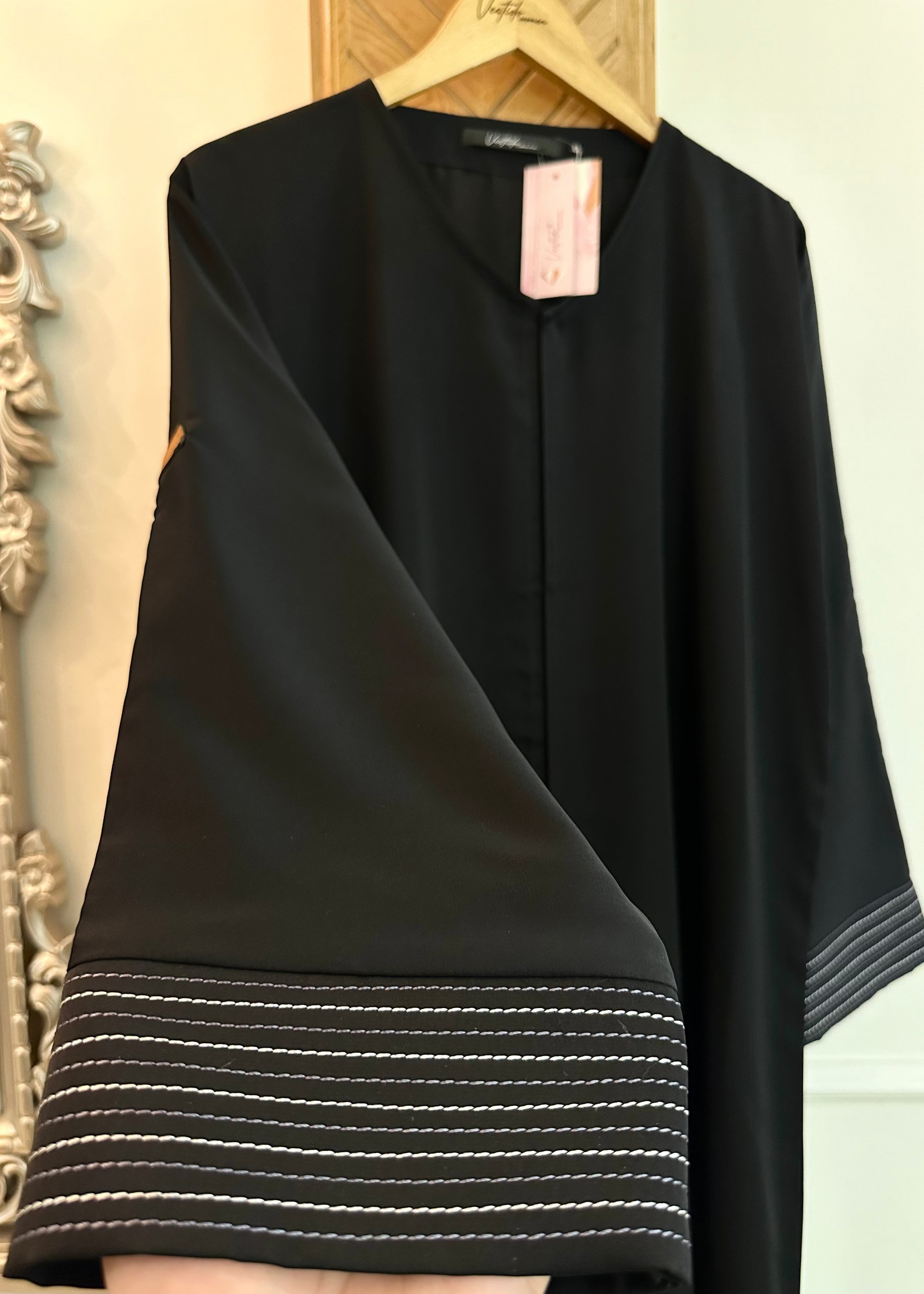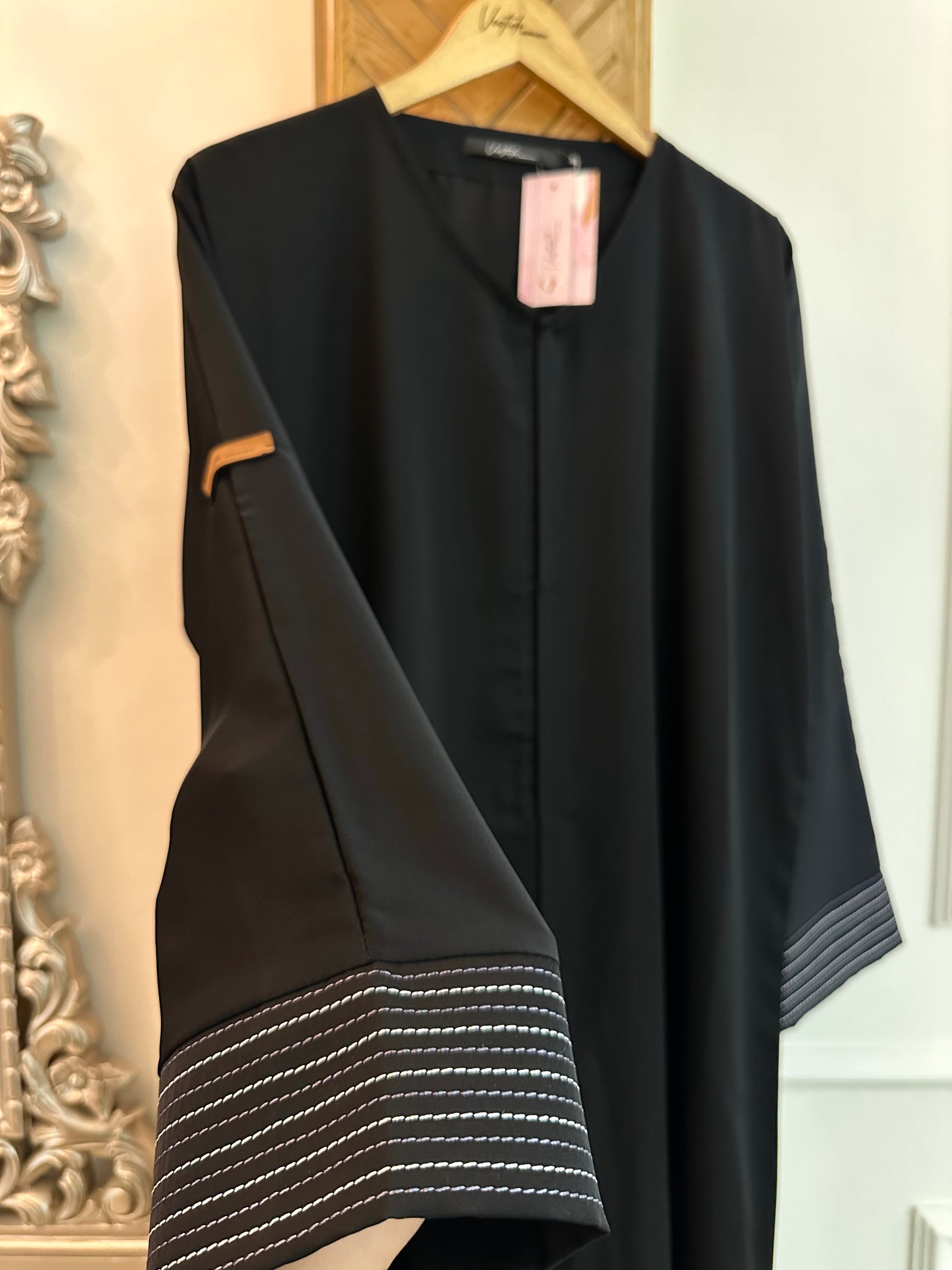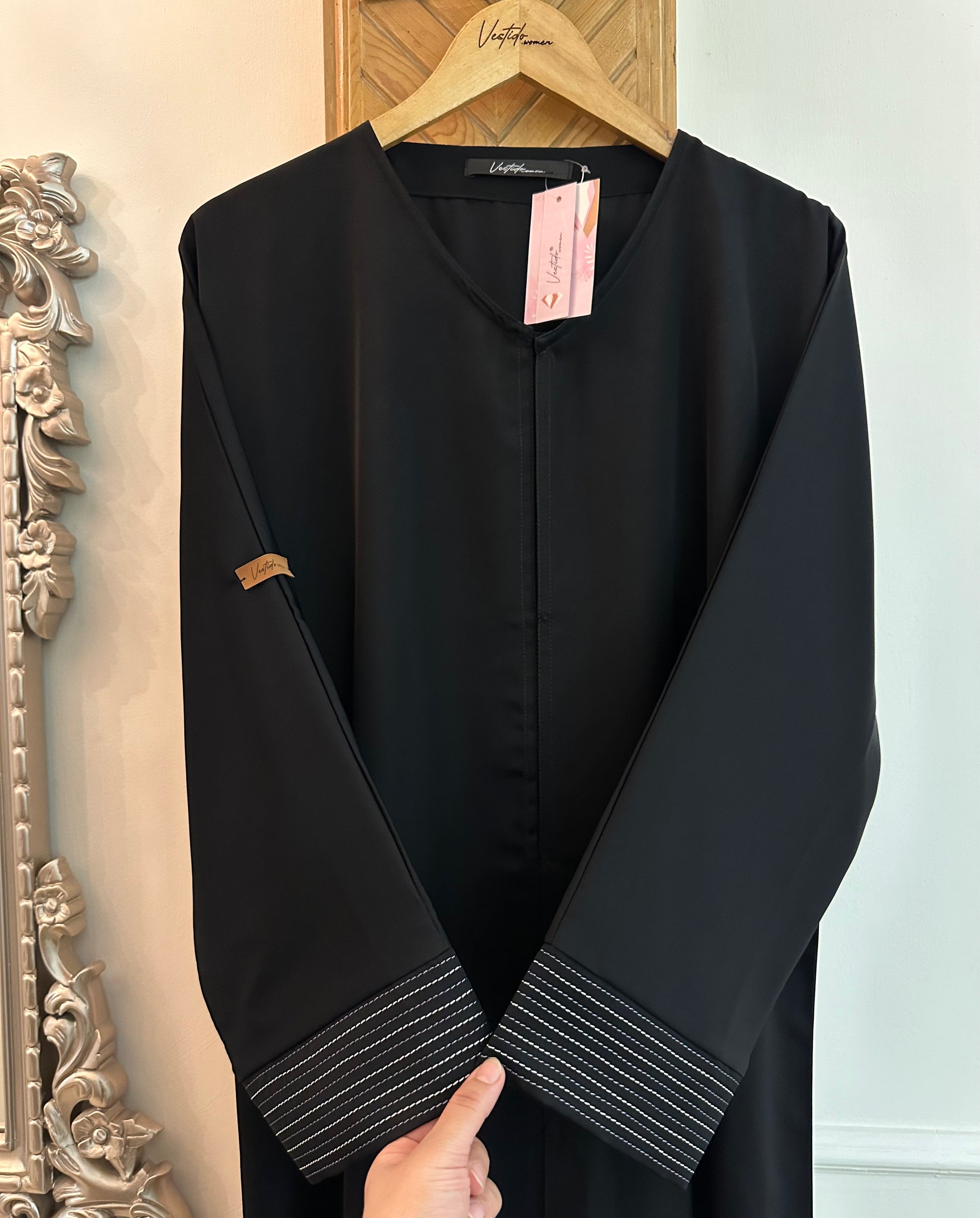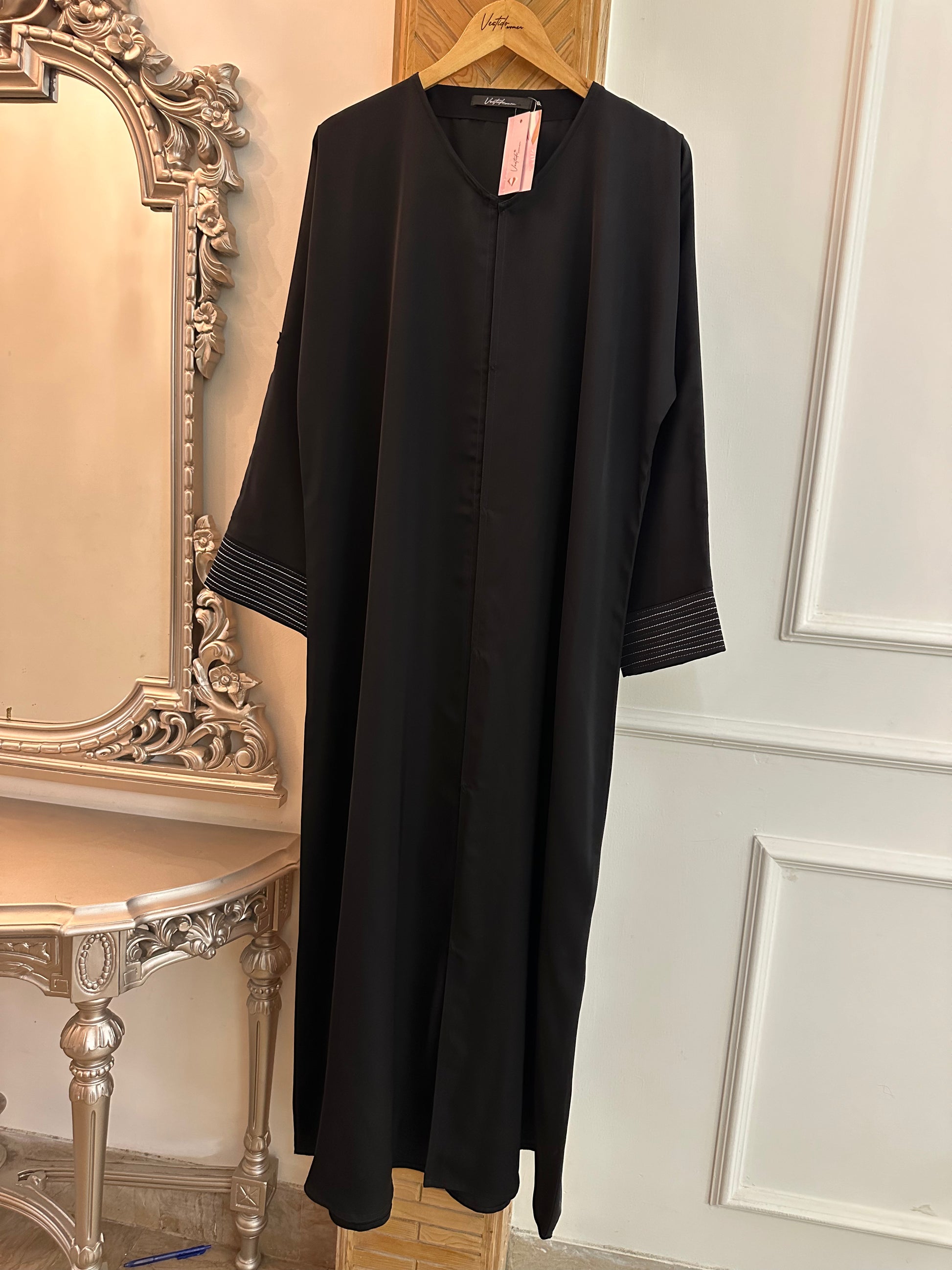 Product Features: Thread work on sleeves and Front open Abaya with Titch Button..
