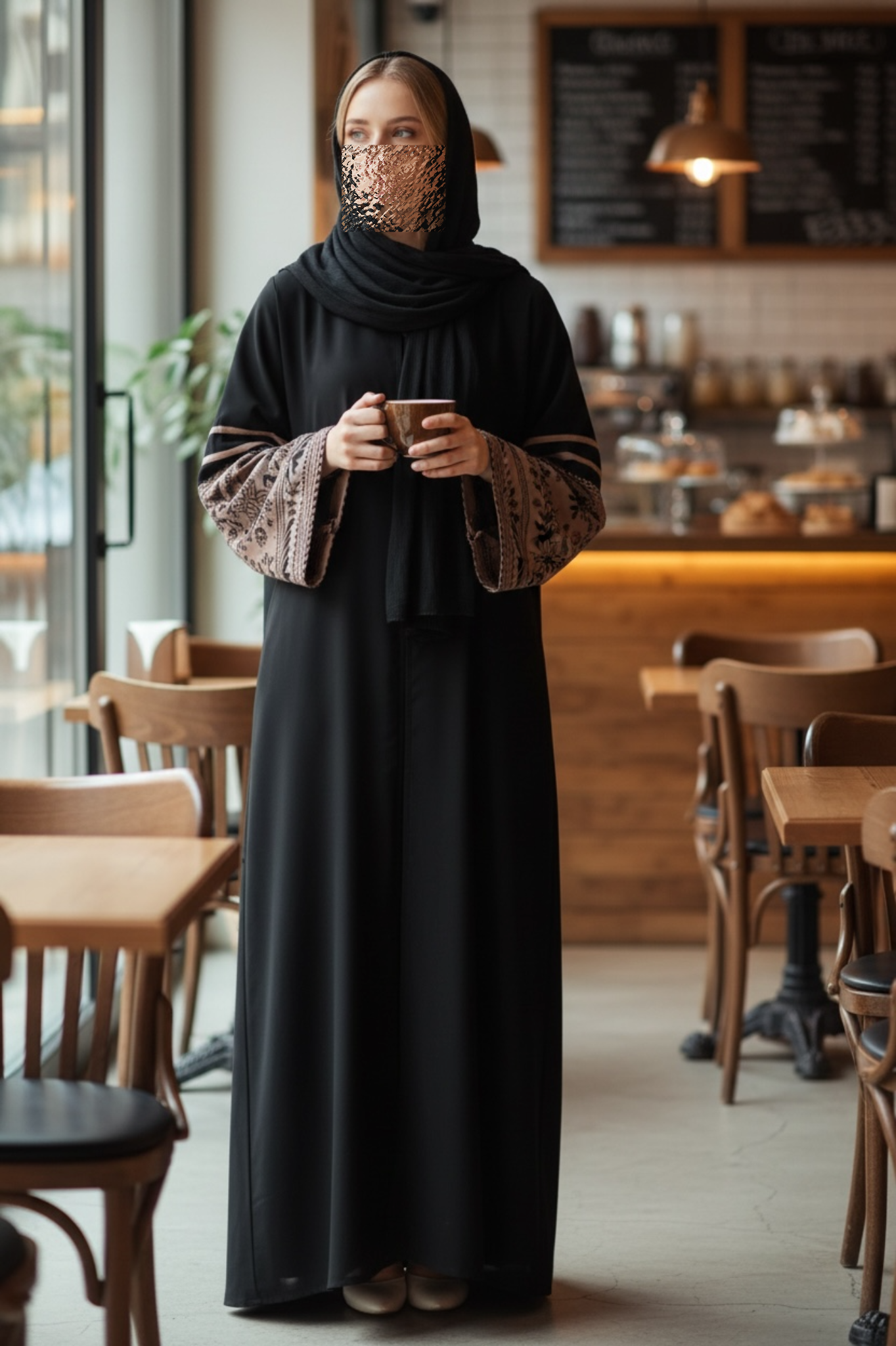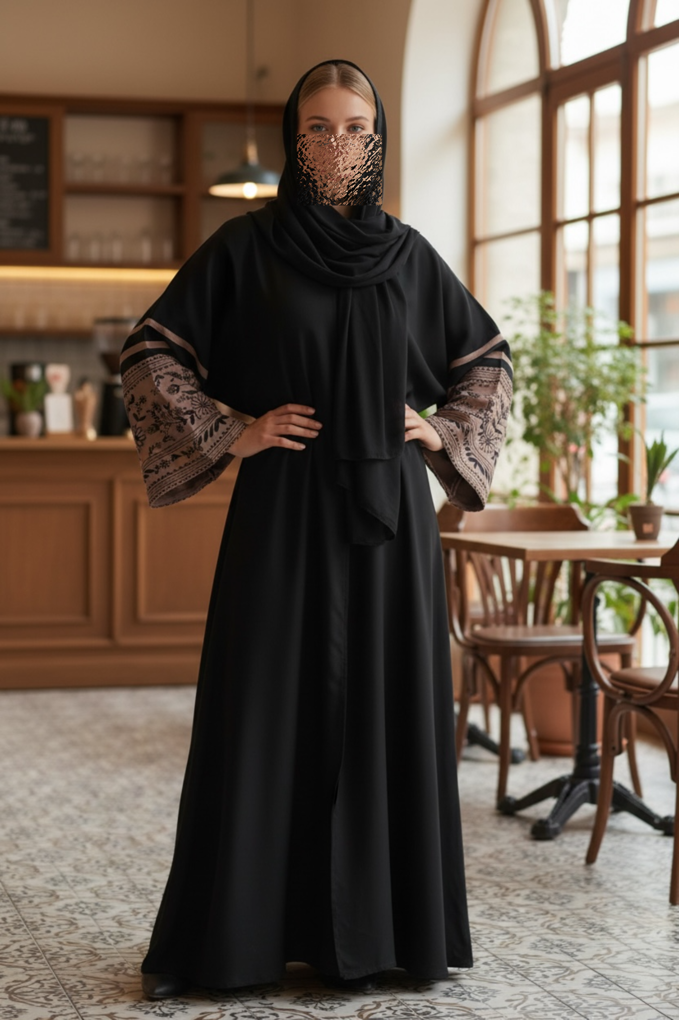 What You Get: Abaya withOUT scarf & embroidered Sleeves .