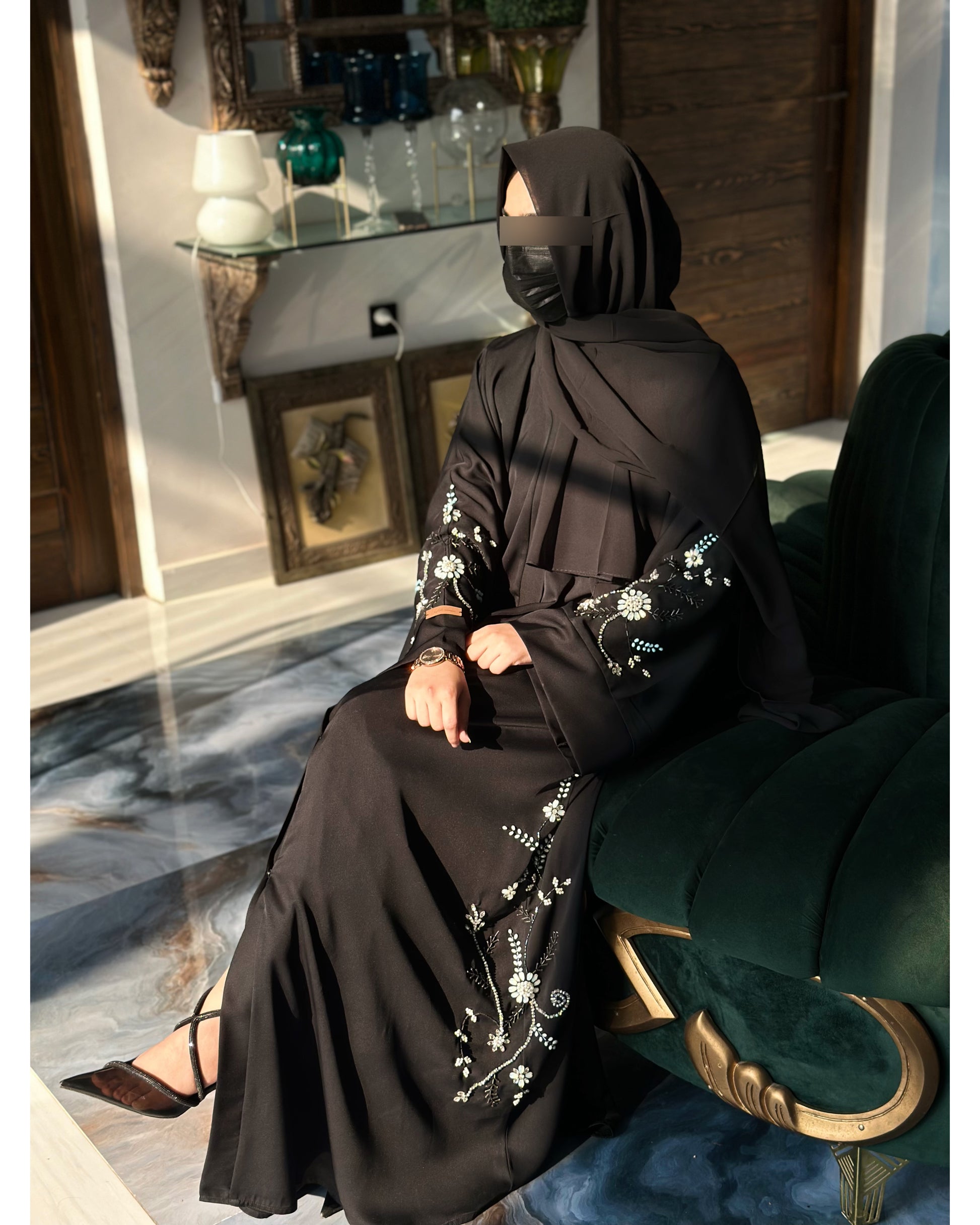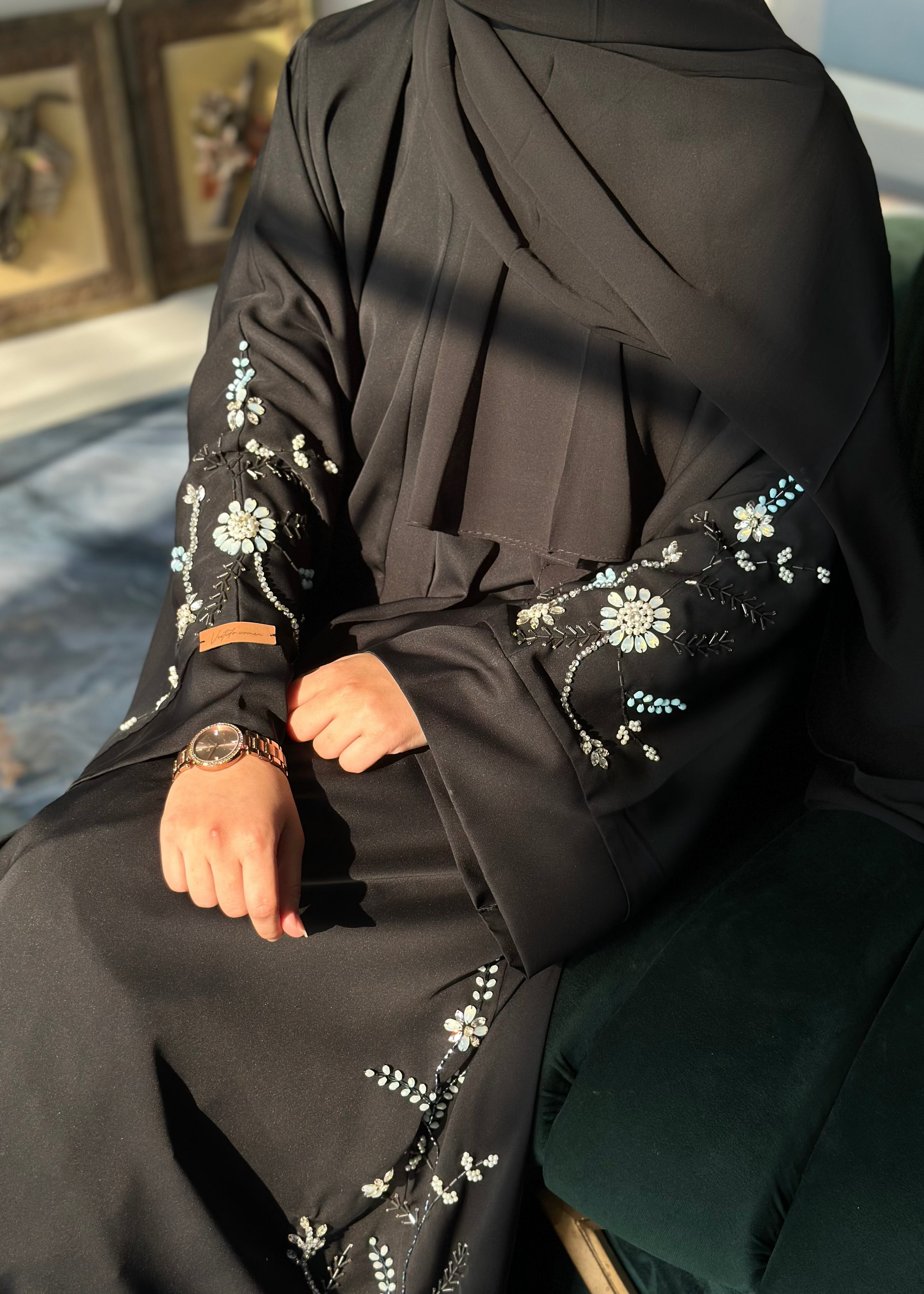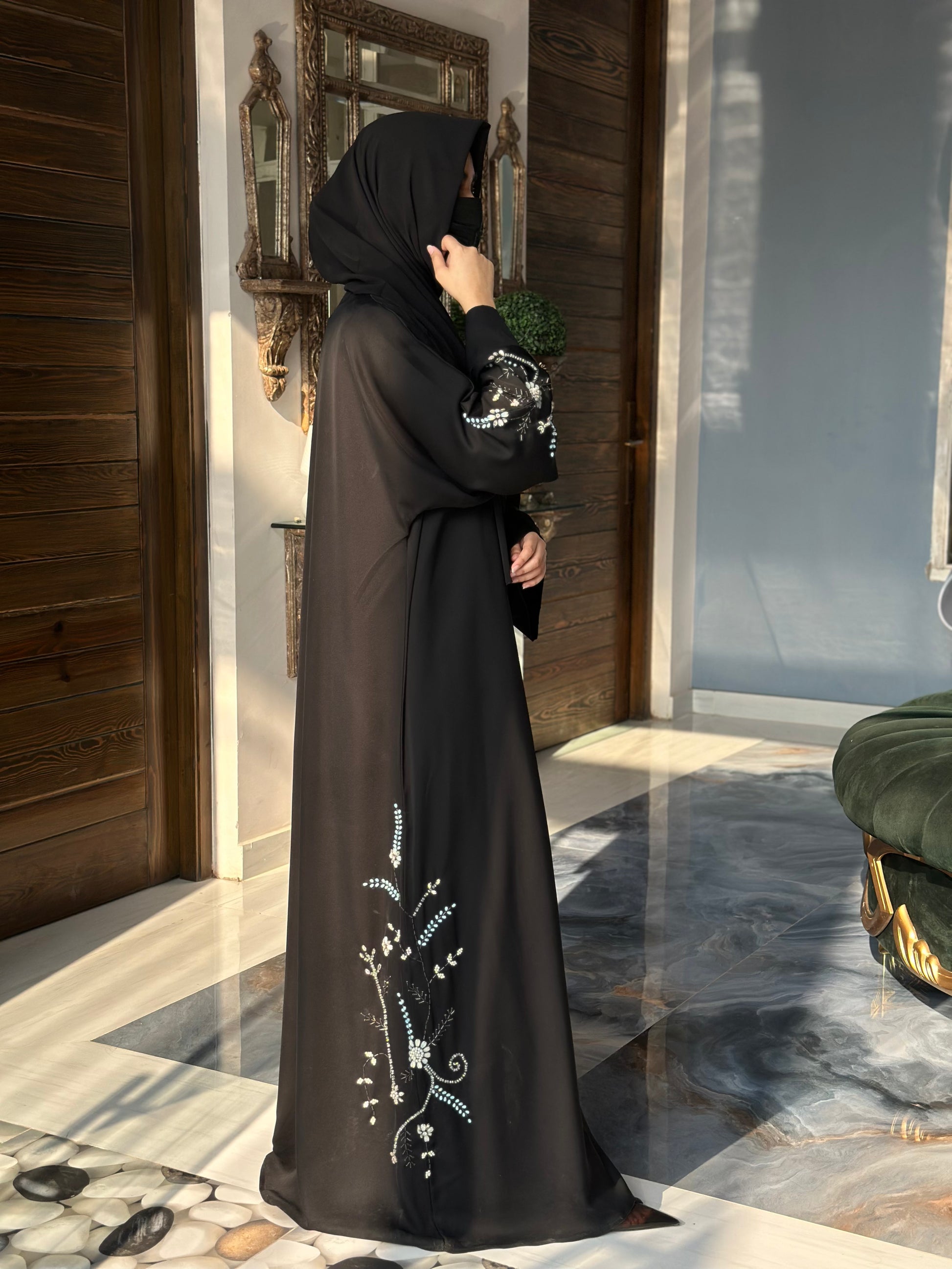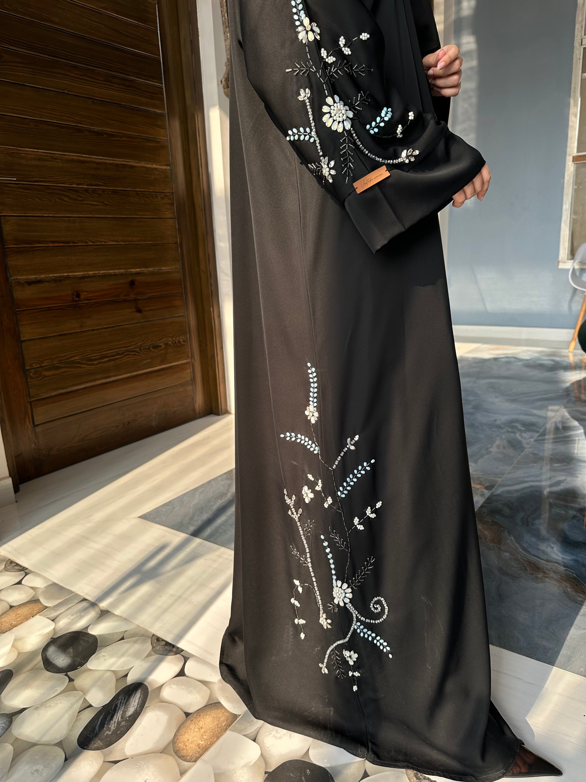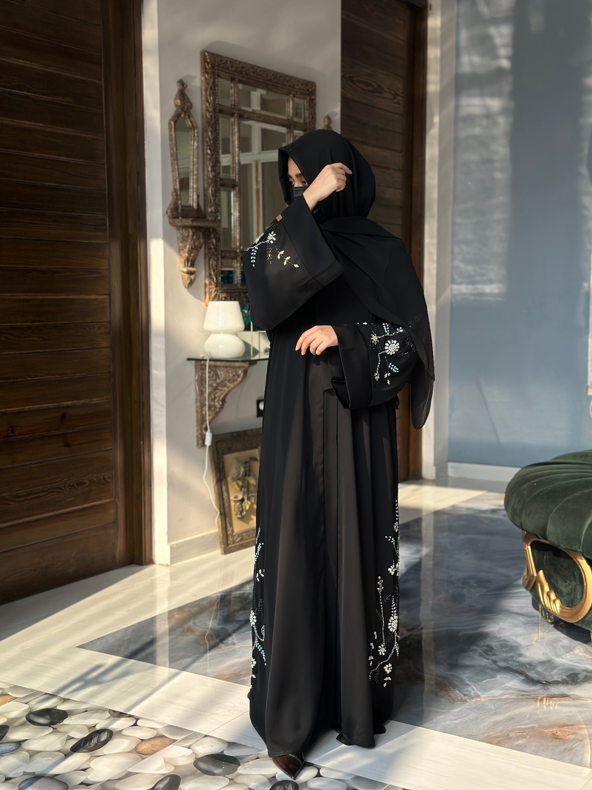 Product Features: Hand embellished Front open Abaya with Titch Button.