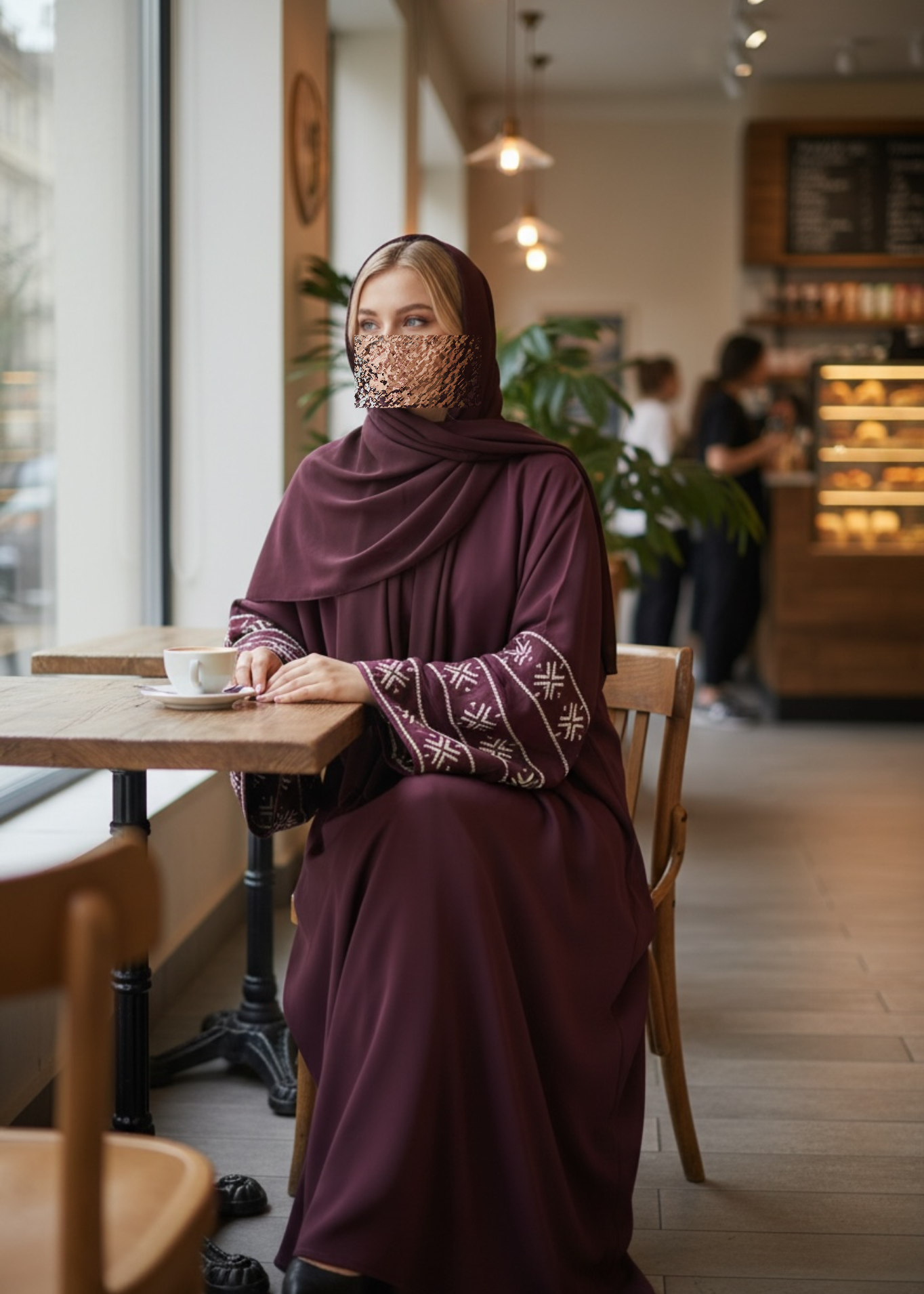 What You Get: Abaya WITHOUT scarf & embroidered Sleeves .