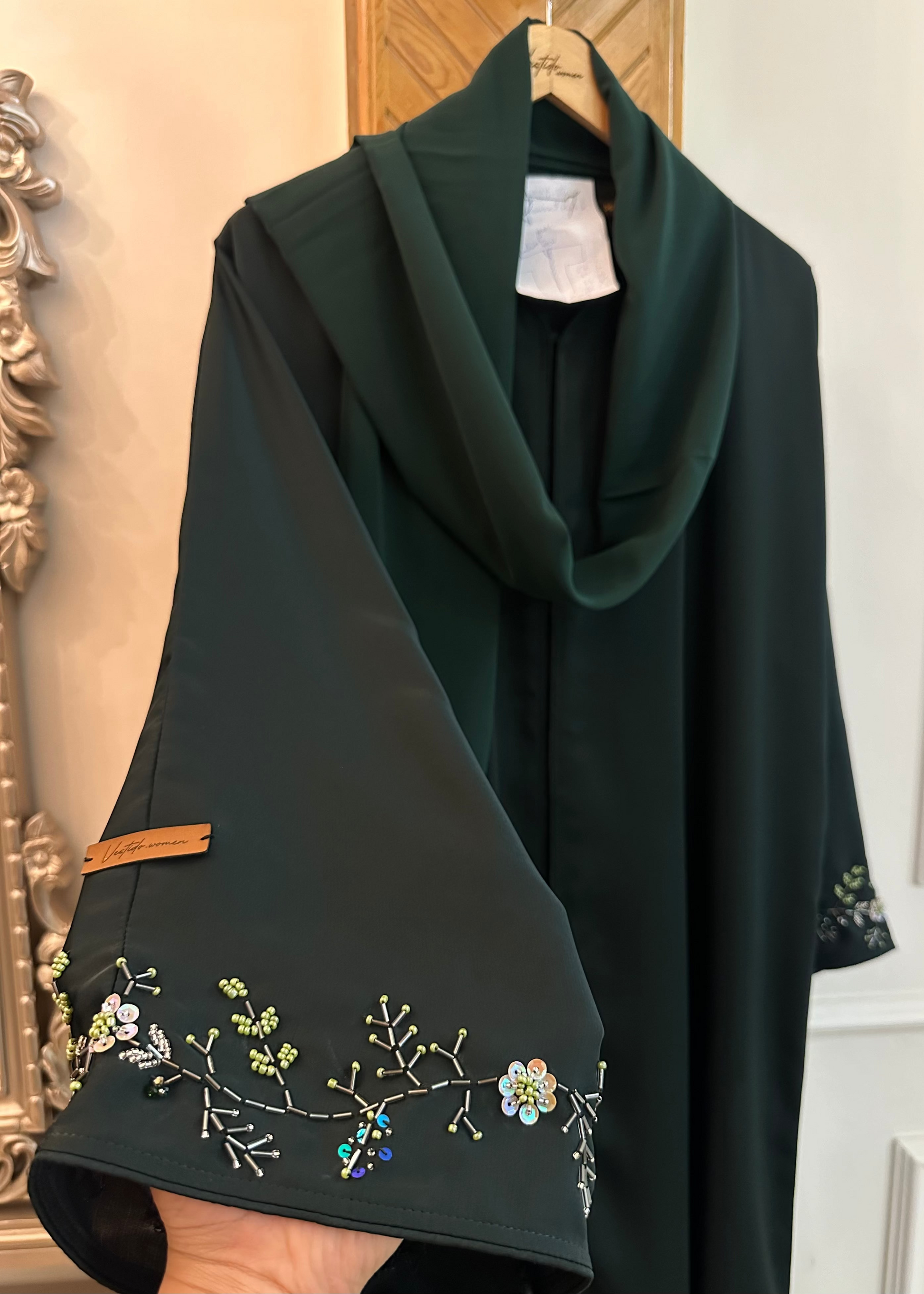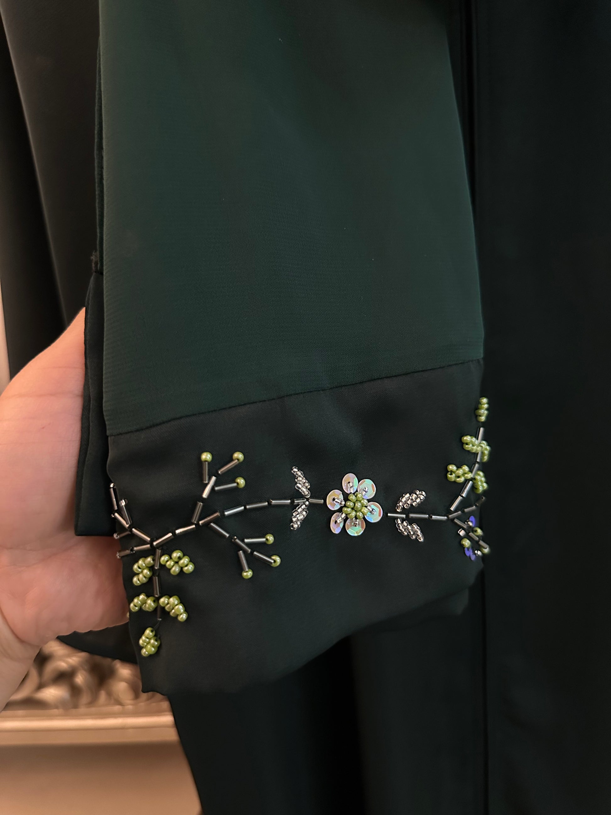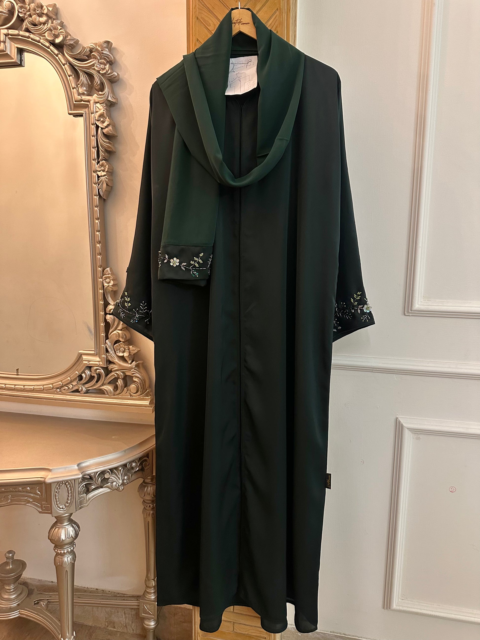 Product Features: Hand embellished Front open Abaya with Titch Button.