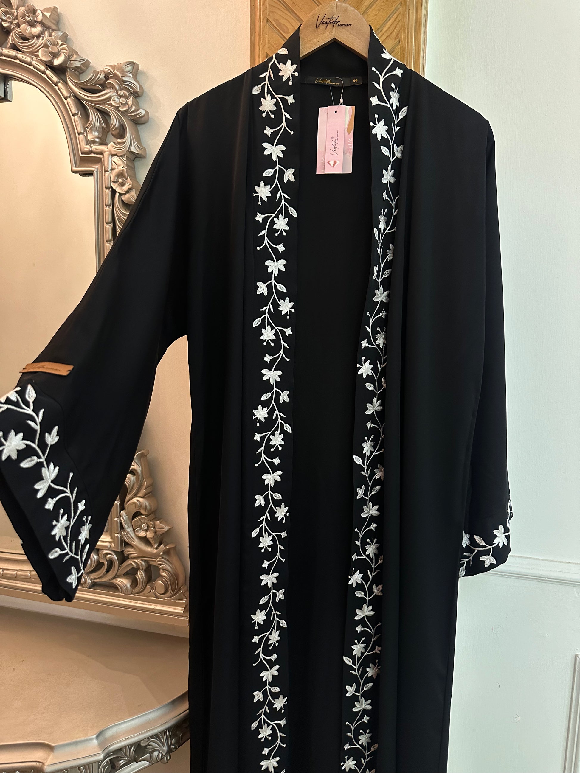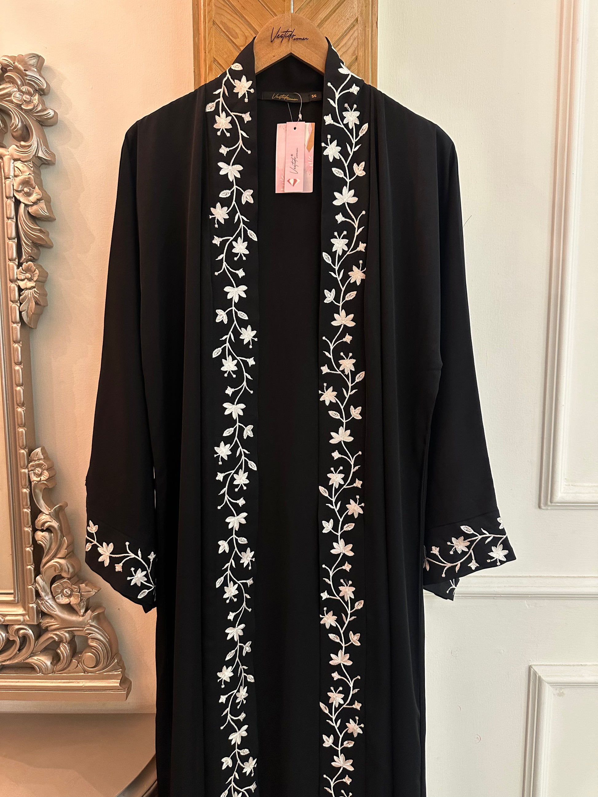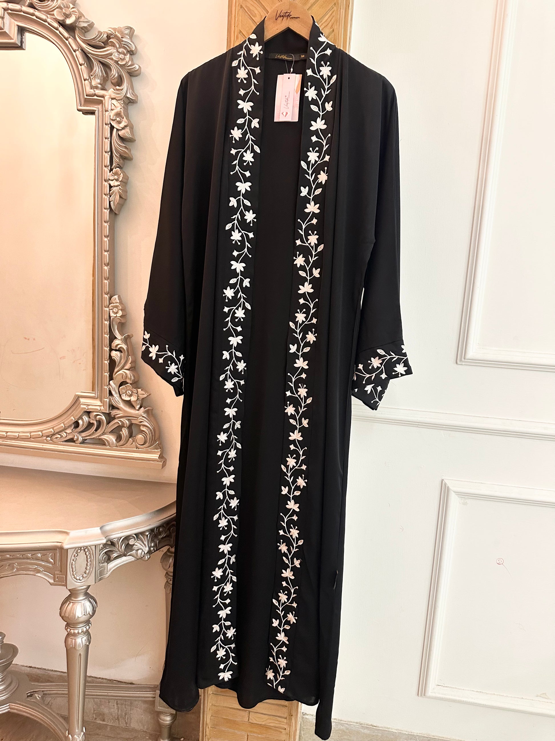 Product Features:front patti and Sleeves embroidered Front open Abaya with Titch Button.