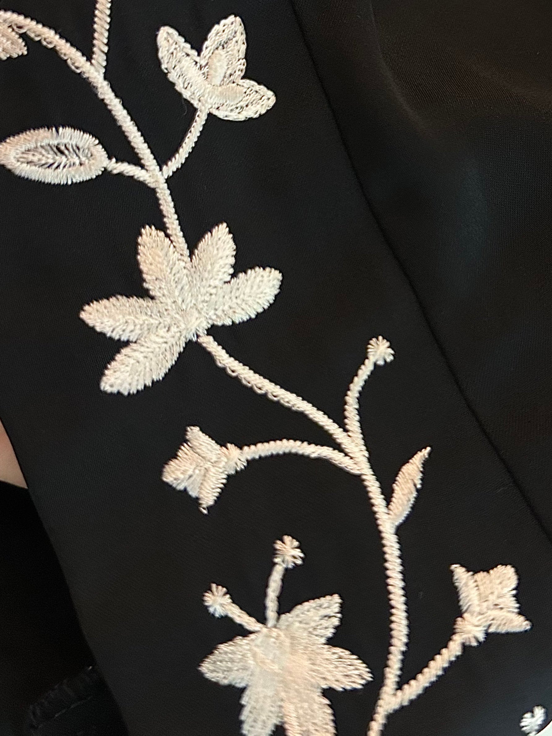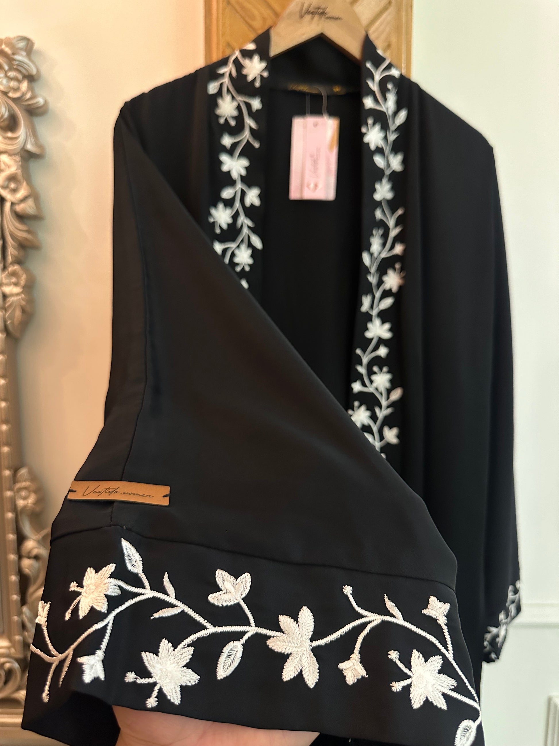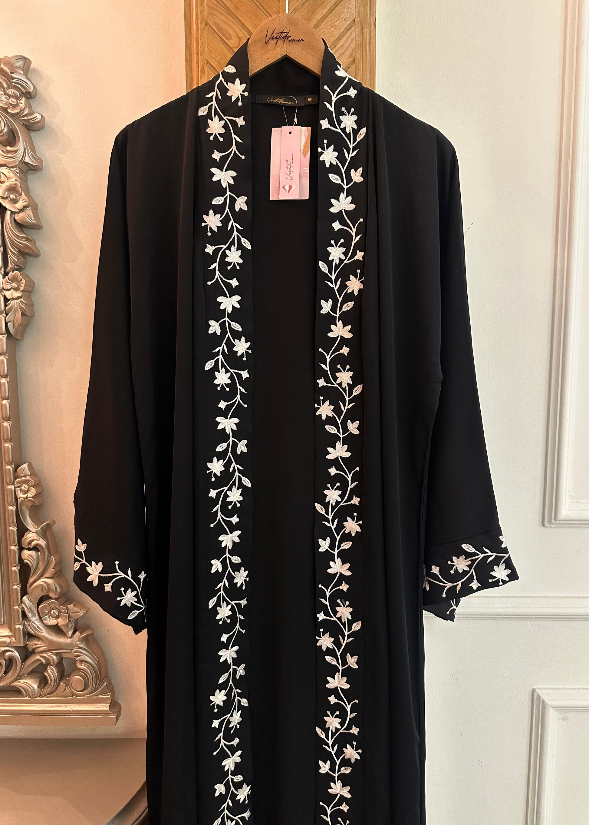 Product Features:front patti and Sleeves embroidered Front open Abaya with Titch Button.