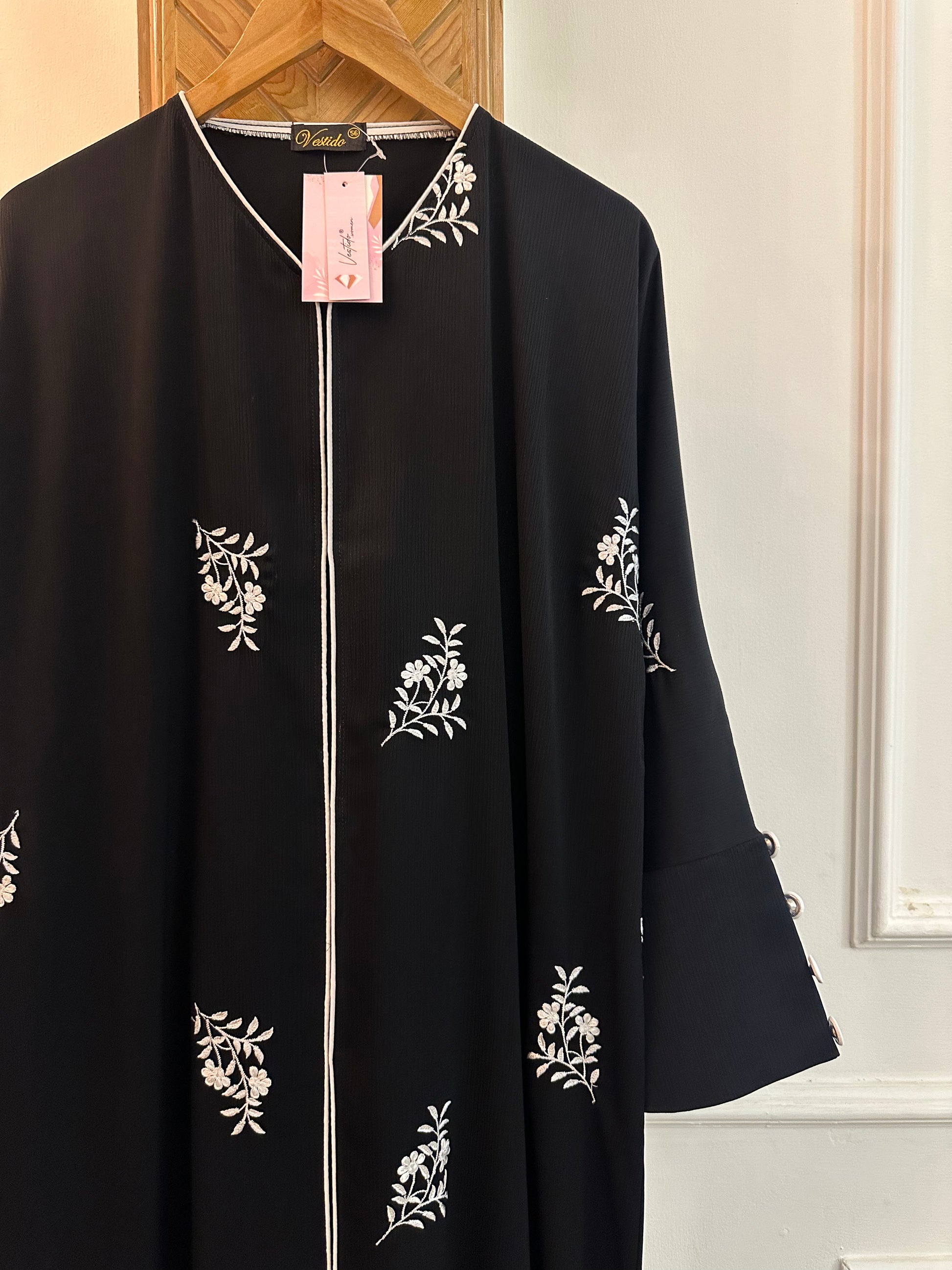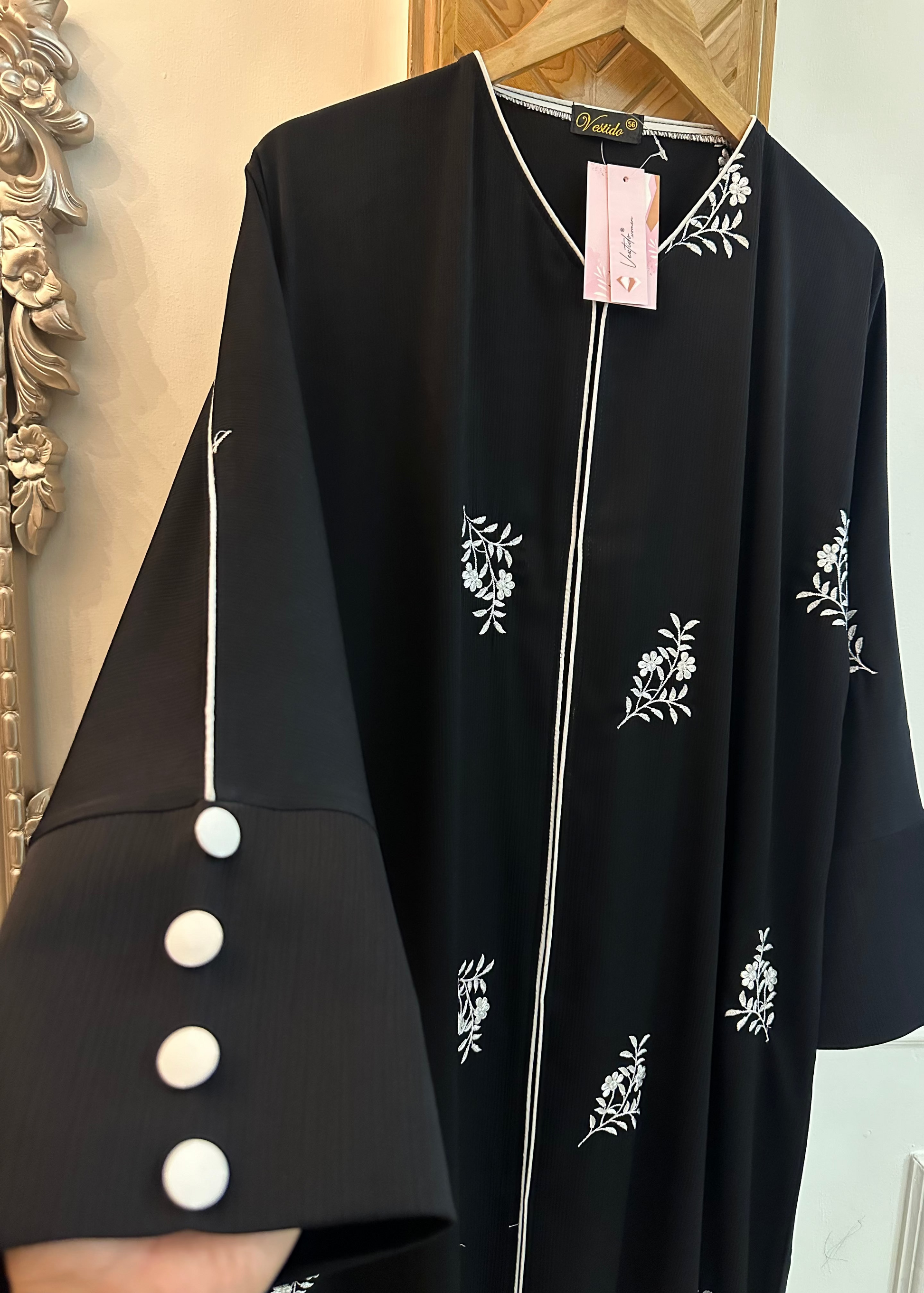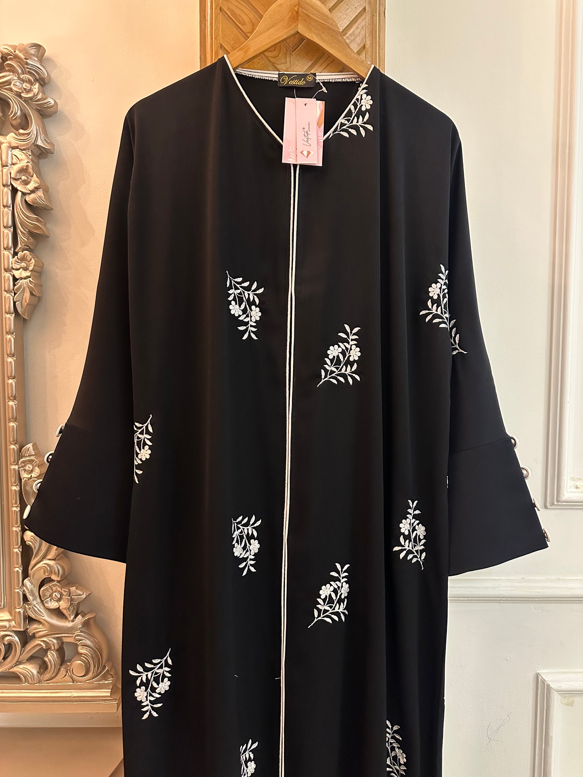 What You Get: Front Back Embroidered Abaya with Plain Scarf