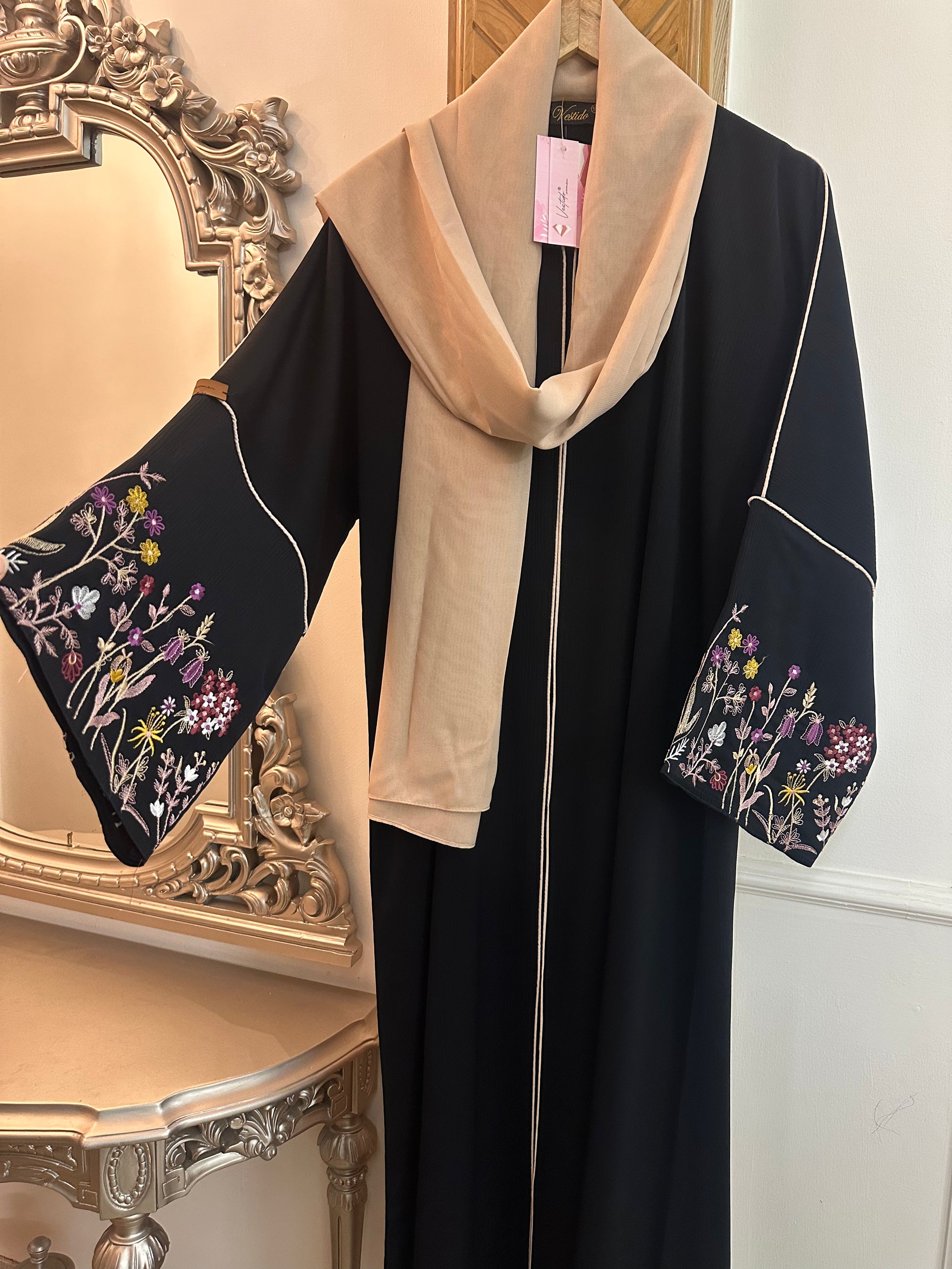 What You Get: Embroidered Sleeves Abaya WITHOUT scarf