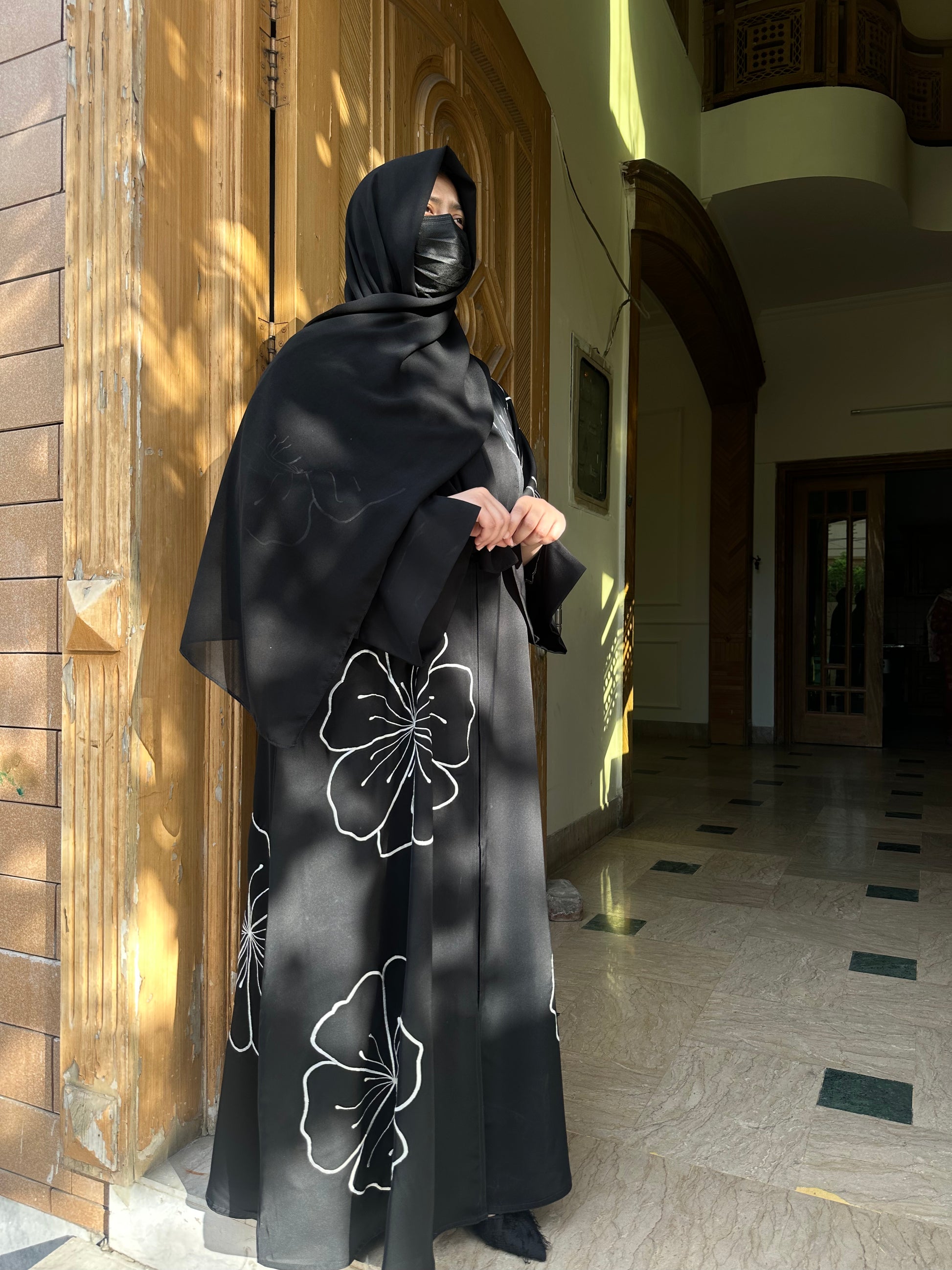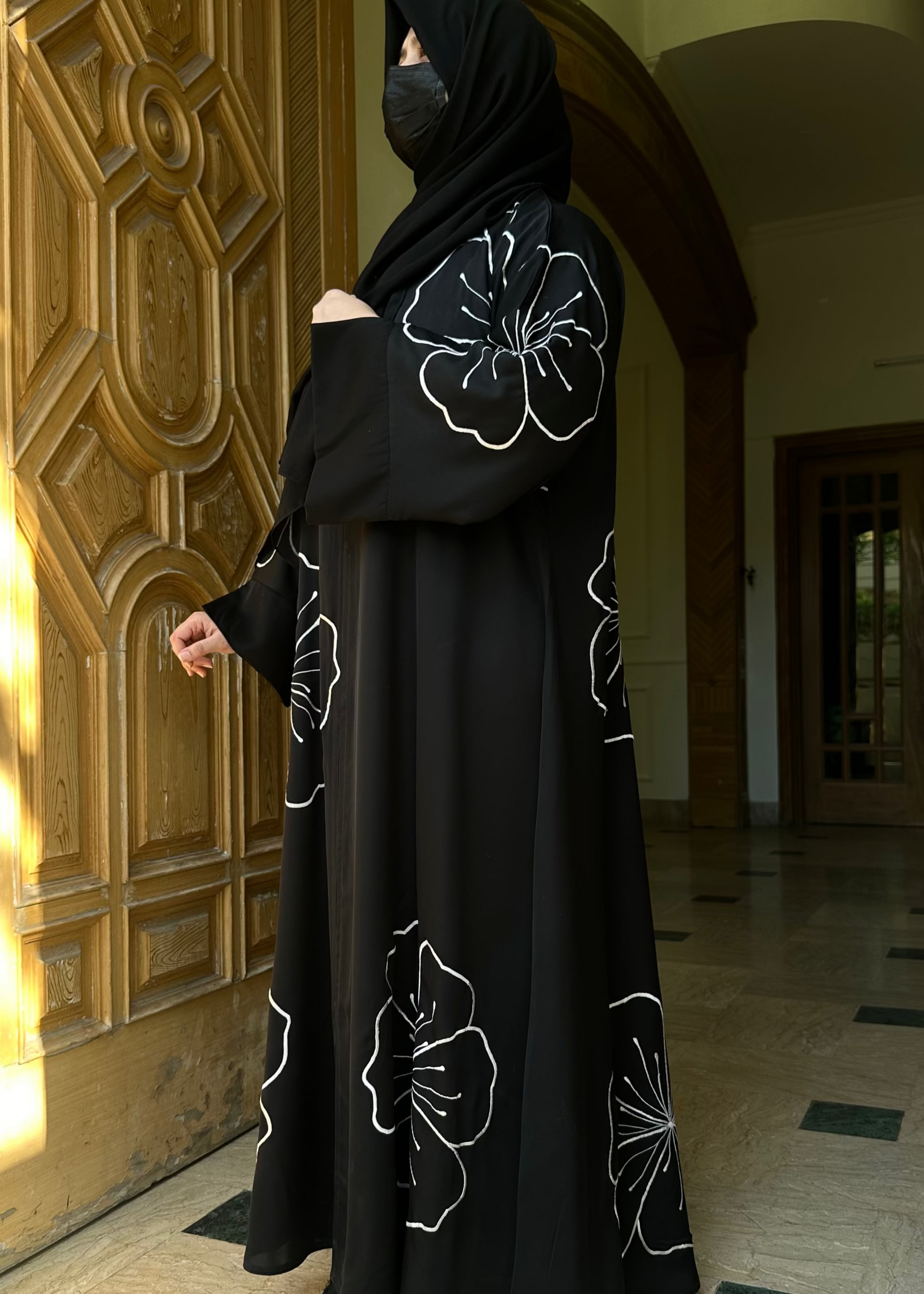 What You Get: All Over Flower Embroidered Abaya with scarf