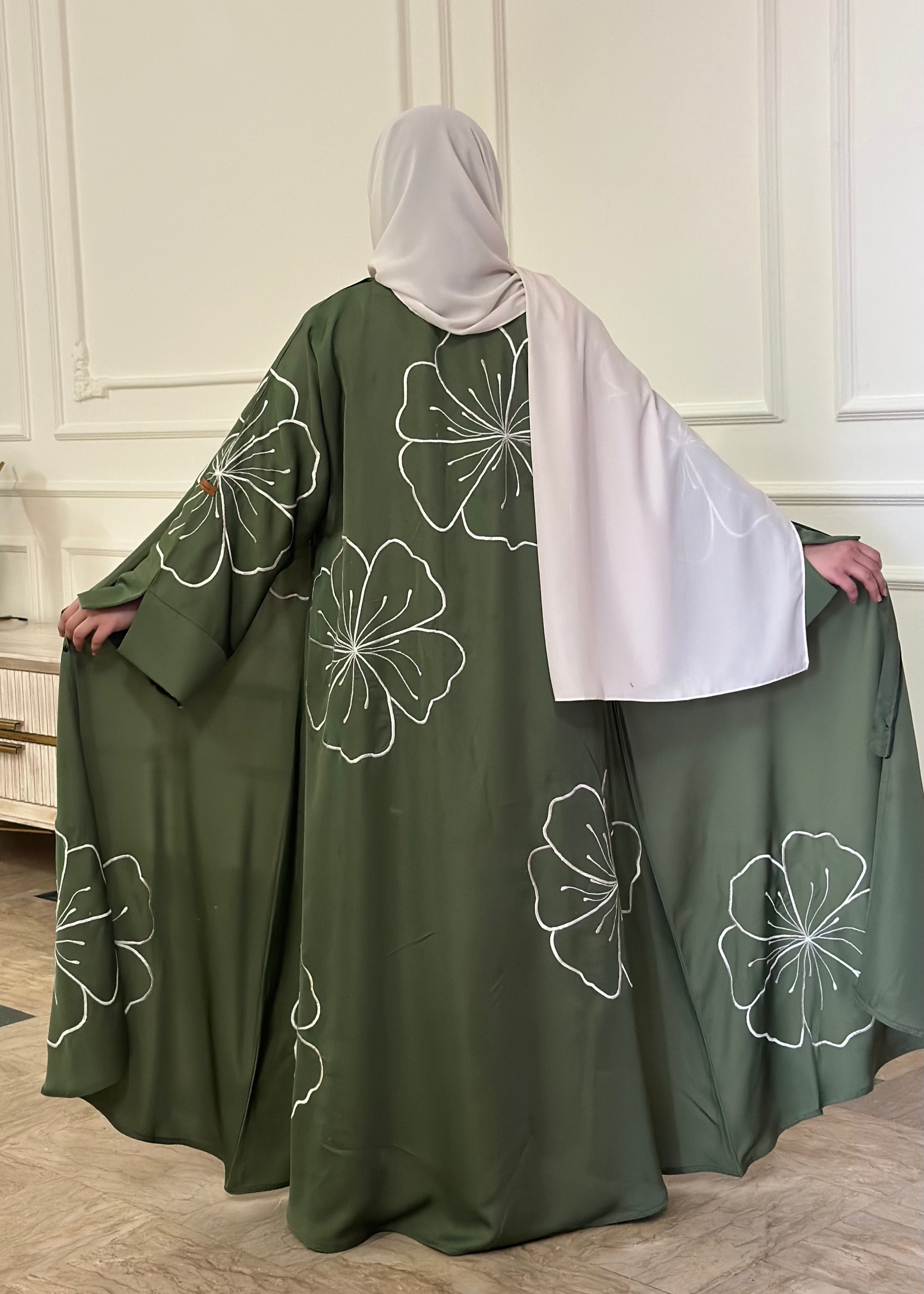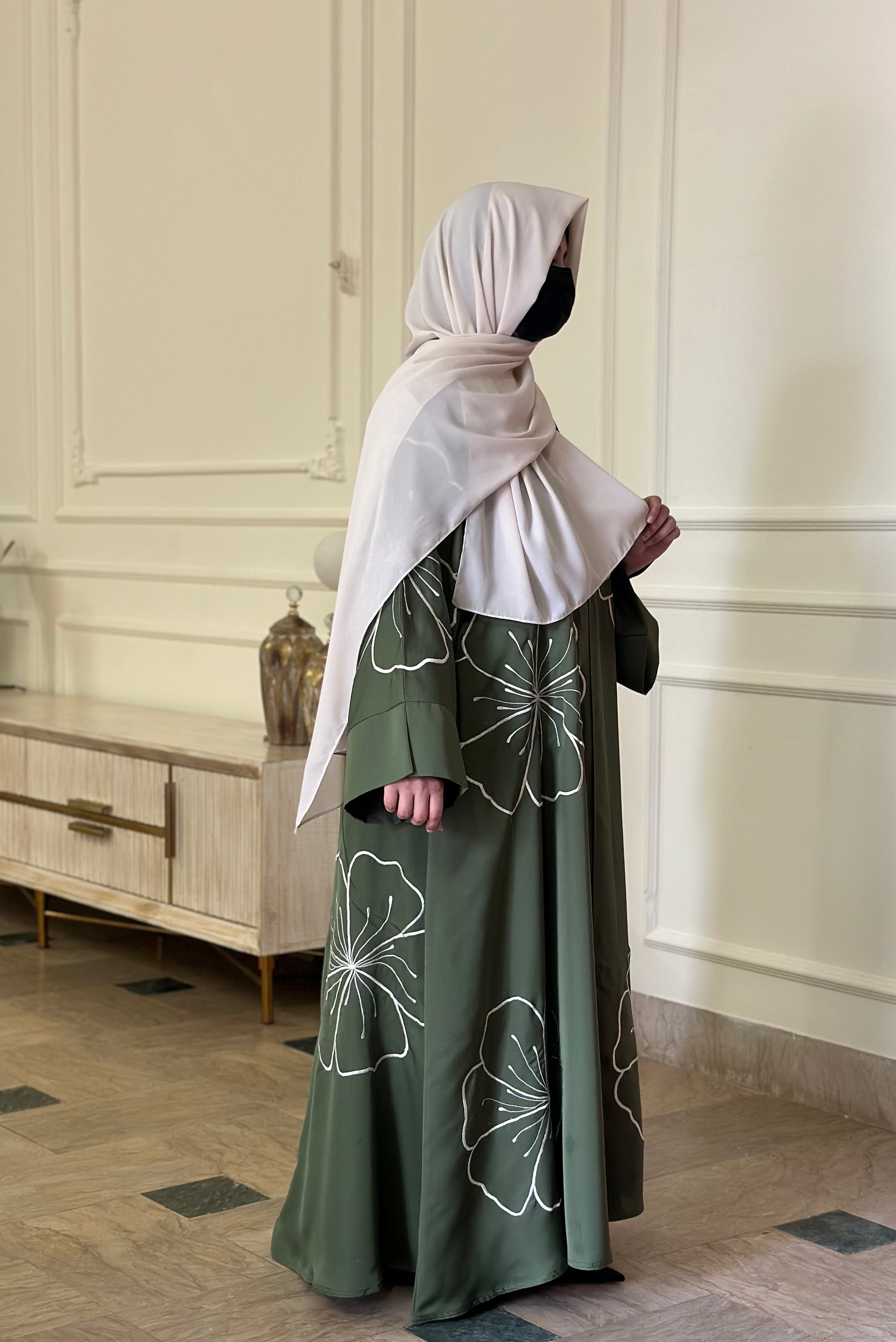 What You Get: All Over Flower Embroidered Abaya with scarf