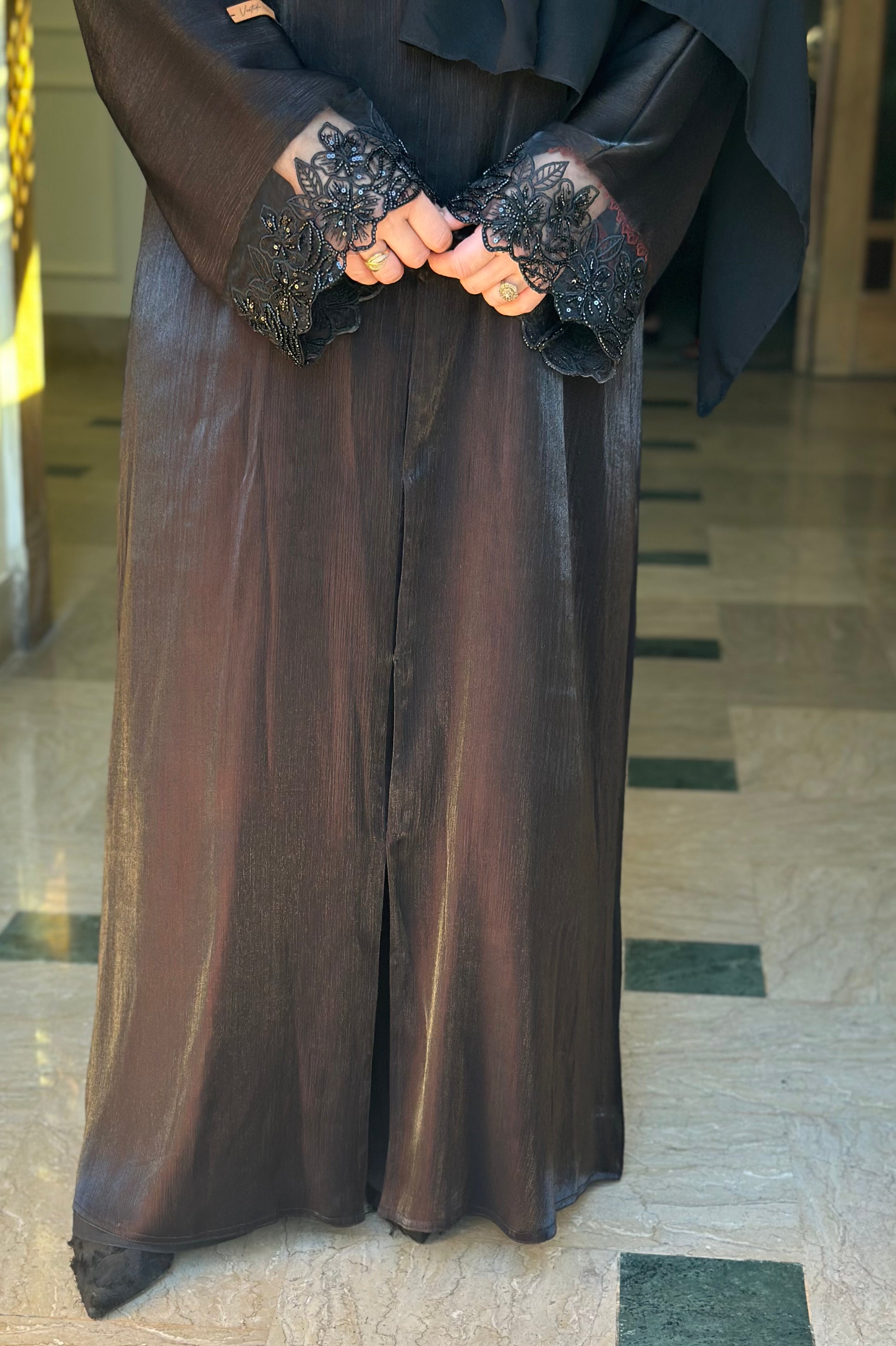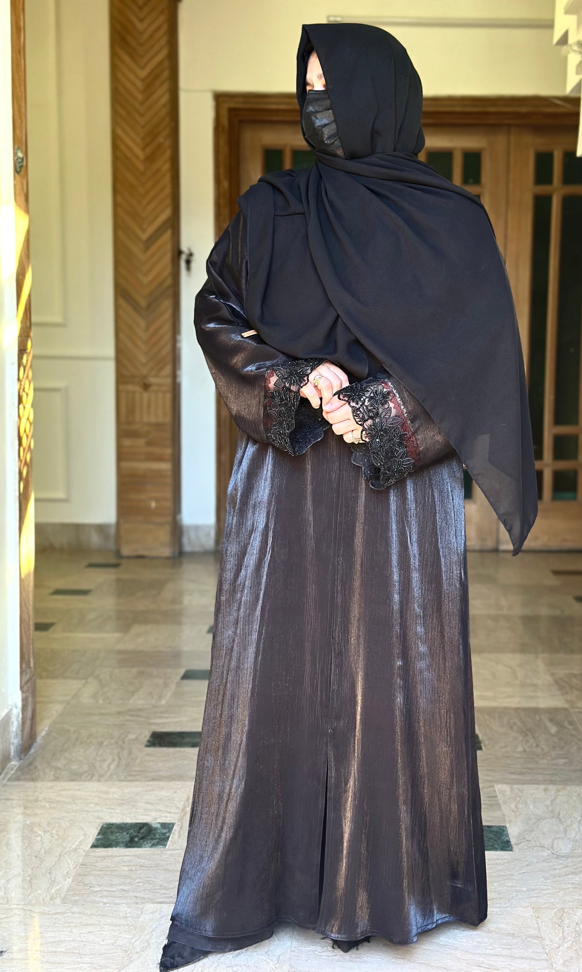 What You Get: Stonework Less Sleves Abaya with scarf
