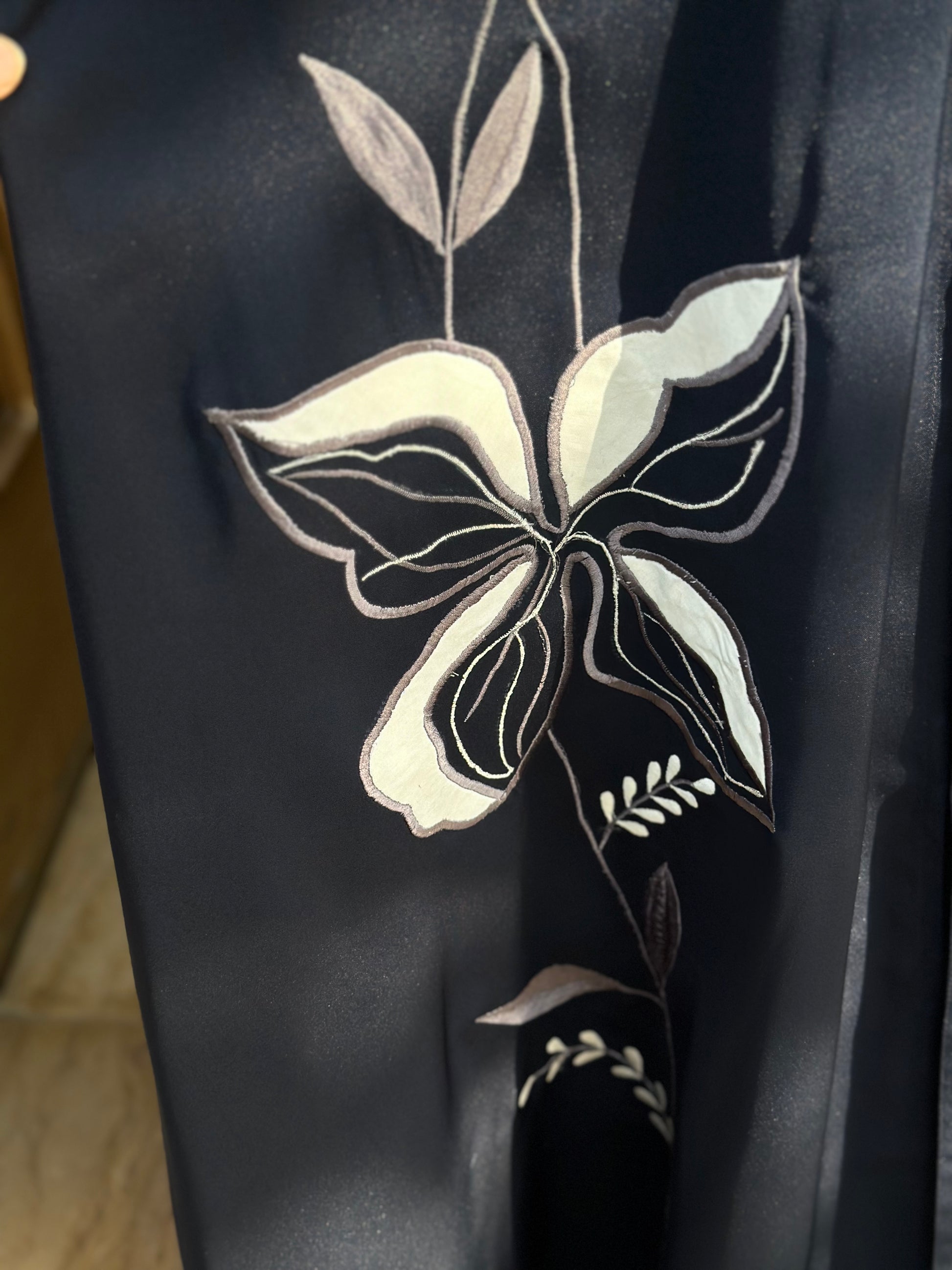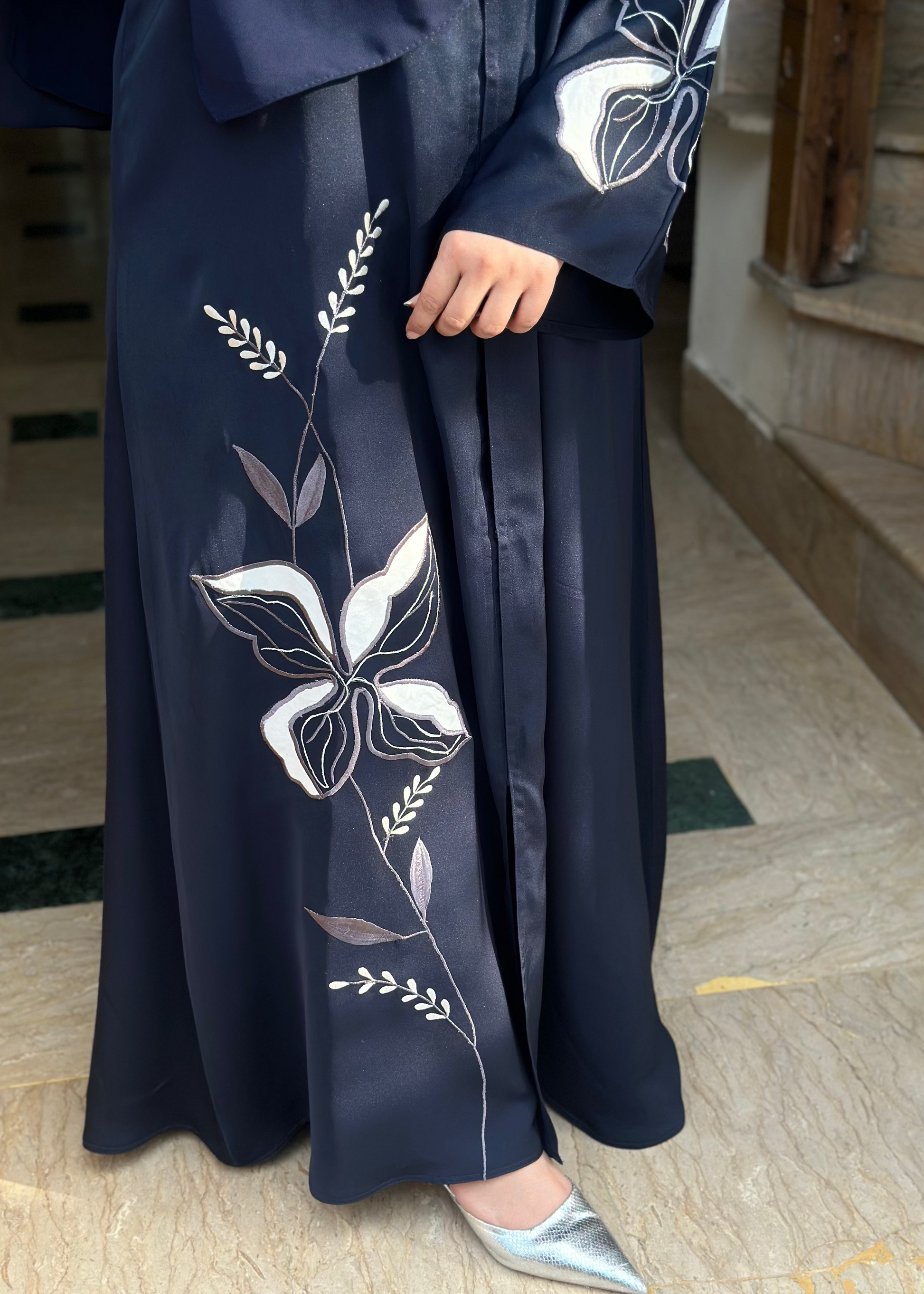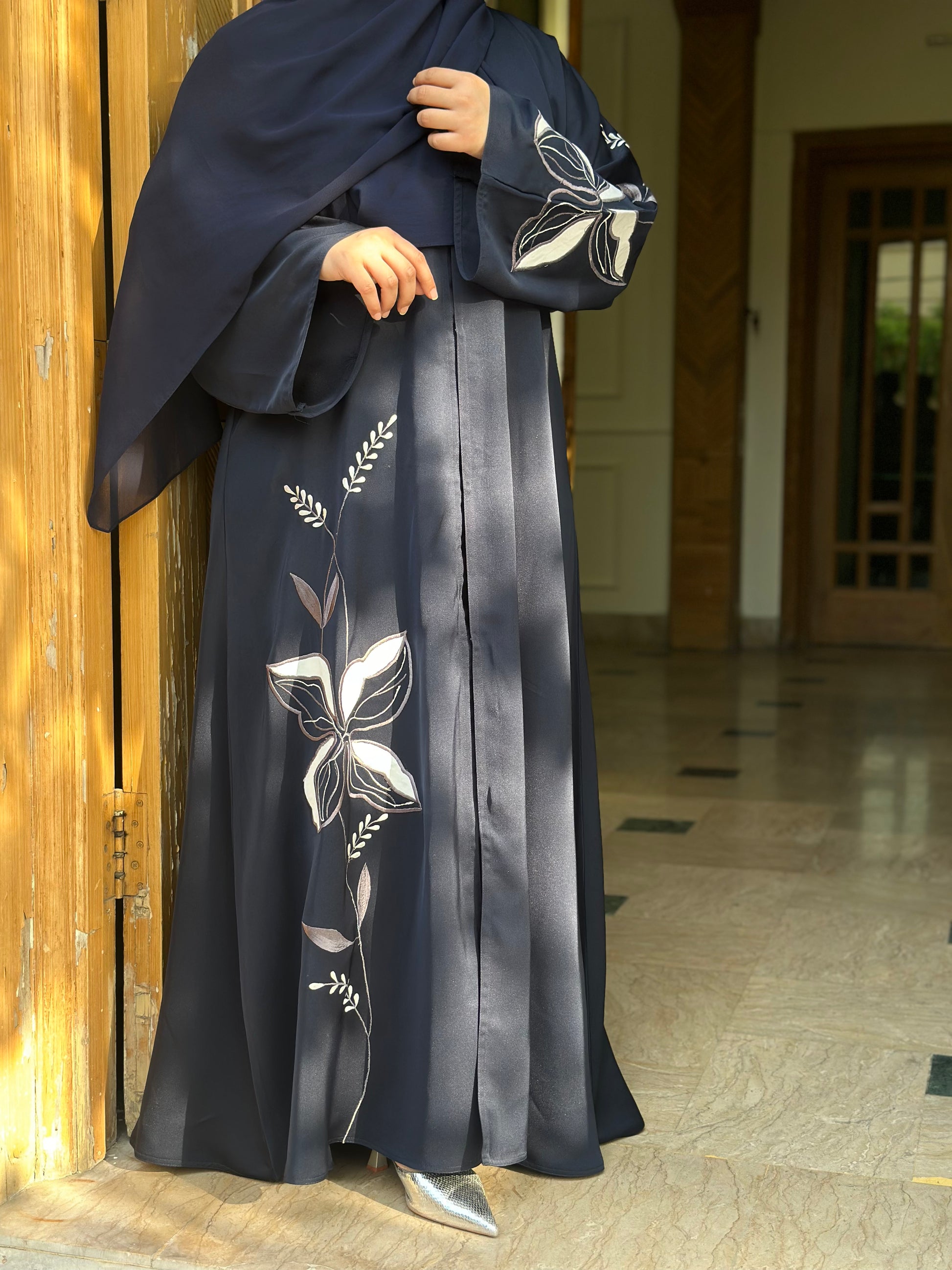 What You Get: Applic Embroidered Front Panal & Applic Sleves Abaya with scarf