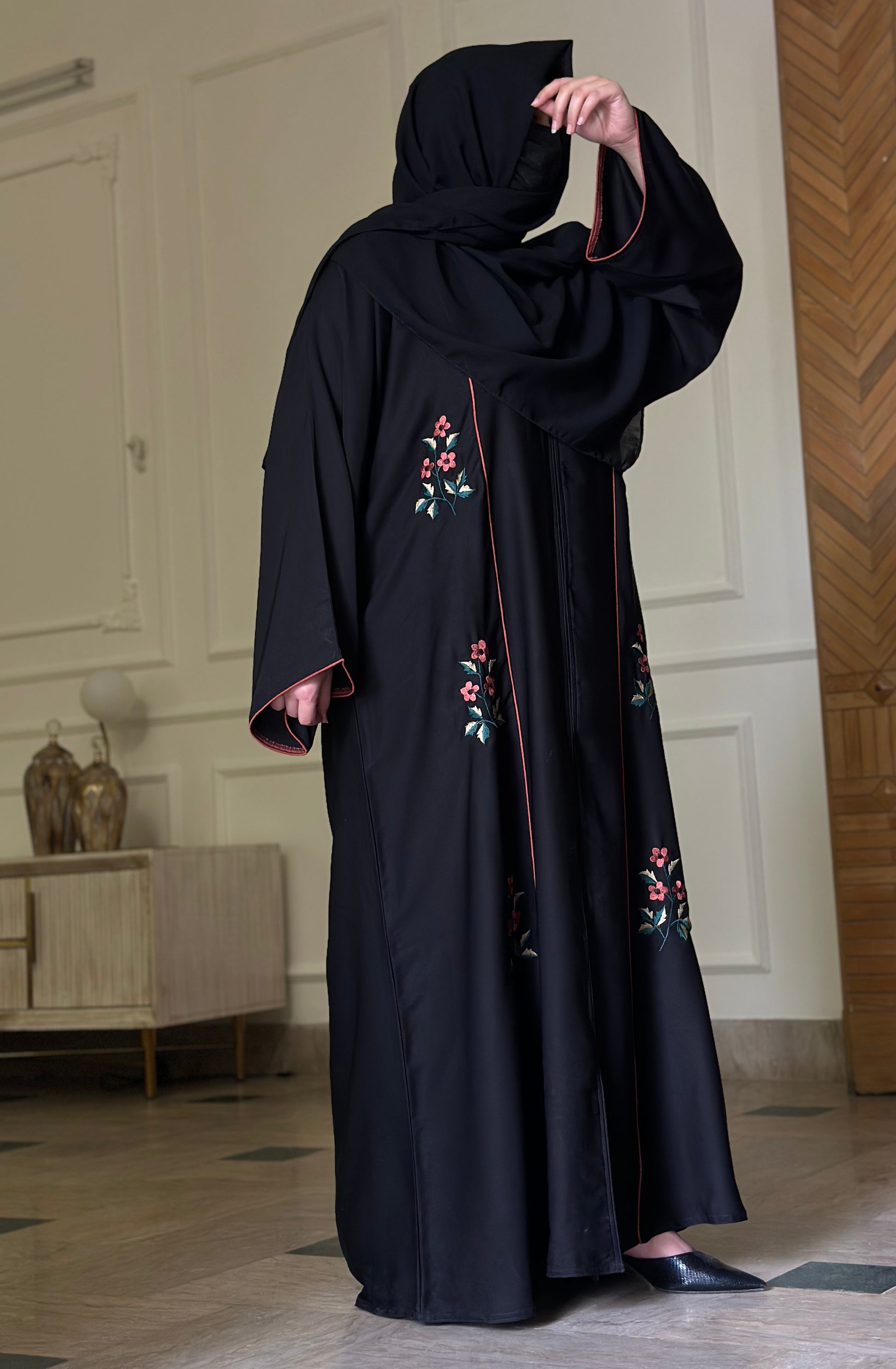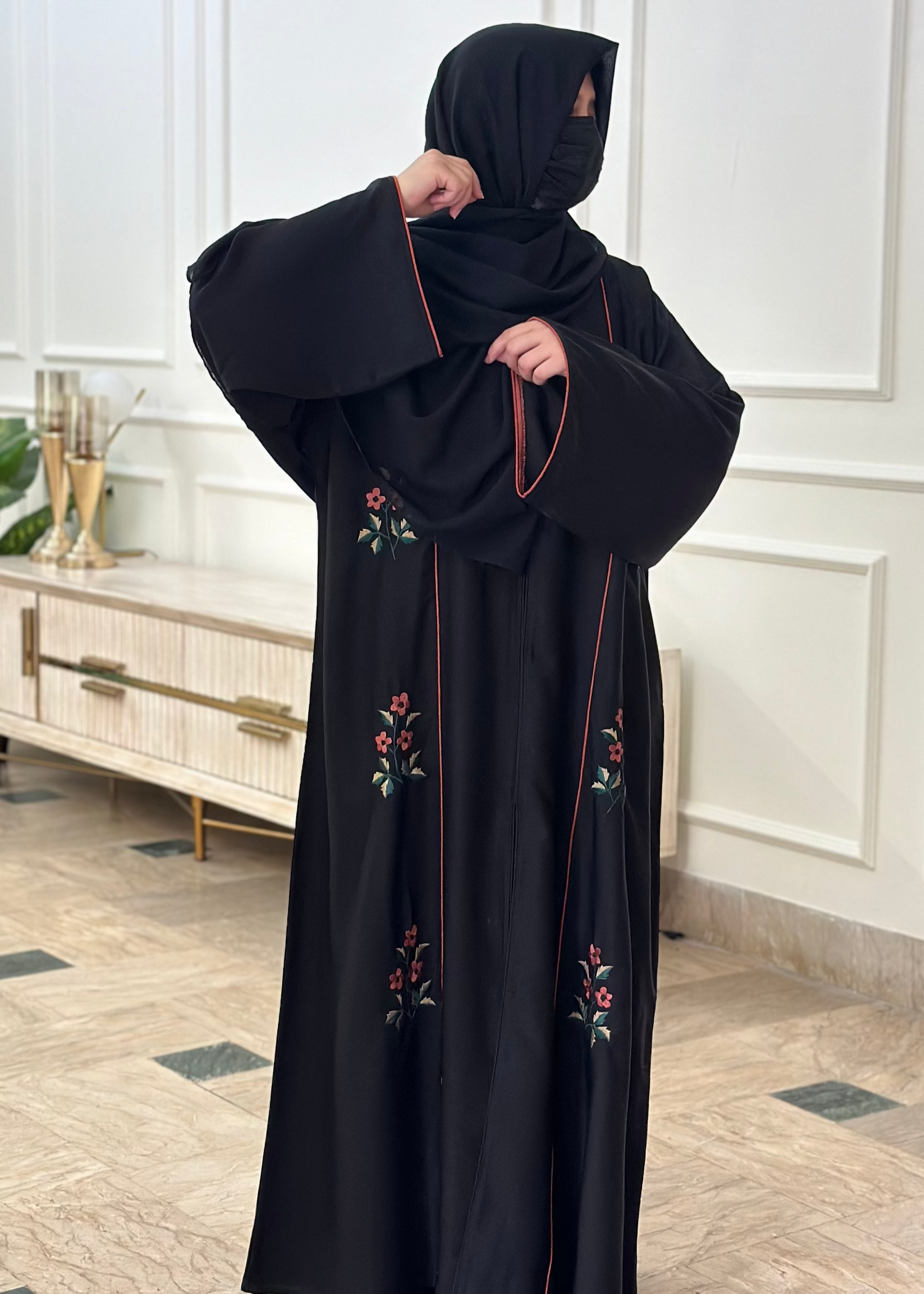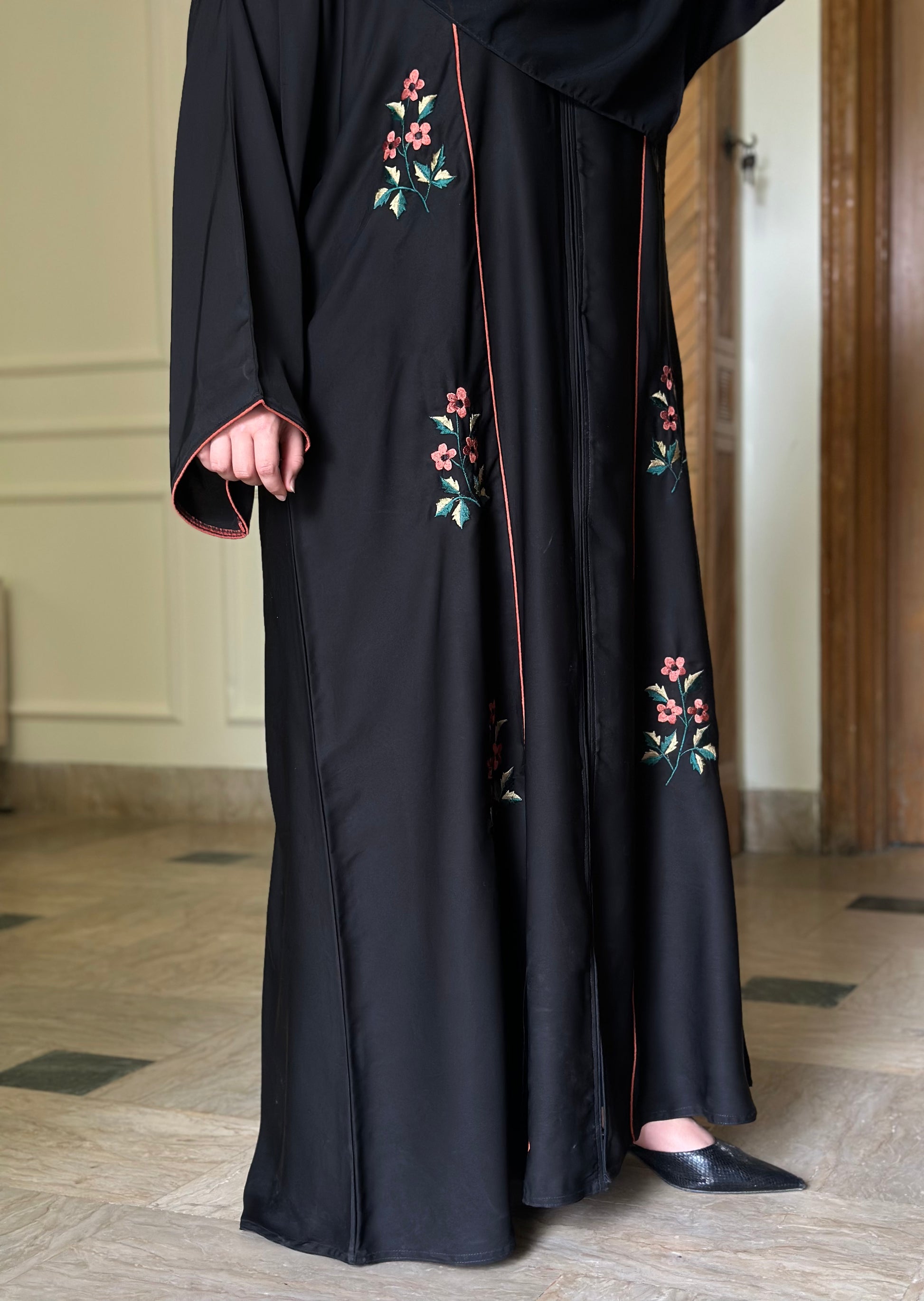 What You Get: Front Panal Embroidered Abaya WITHOUT scarf