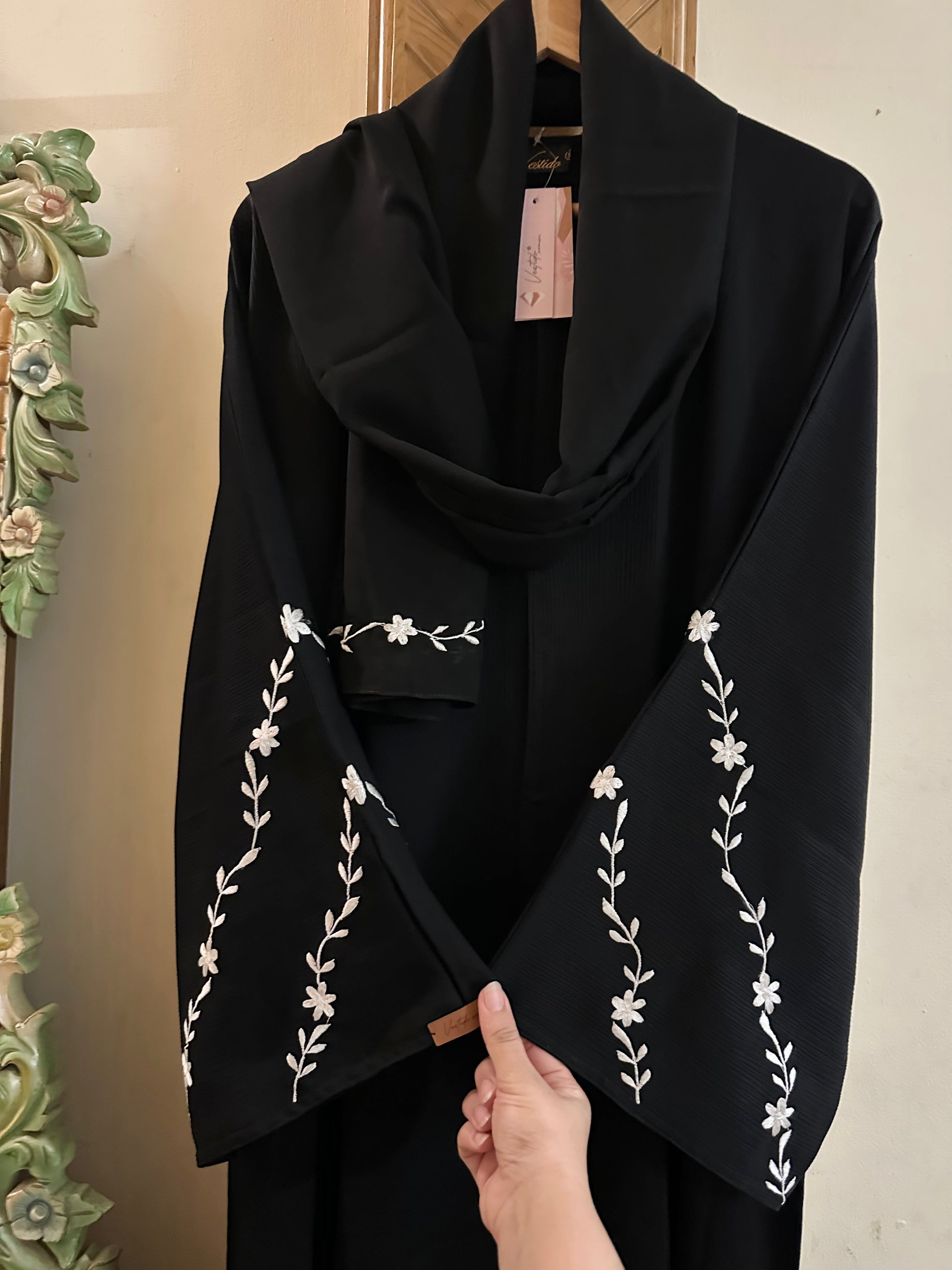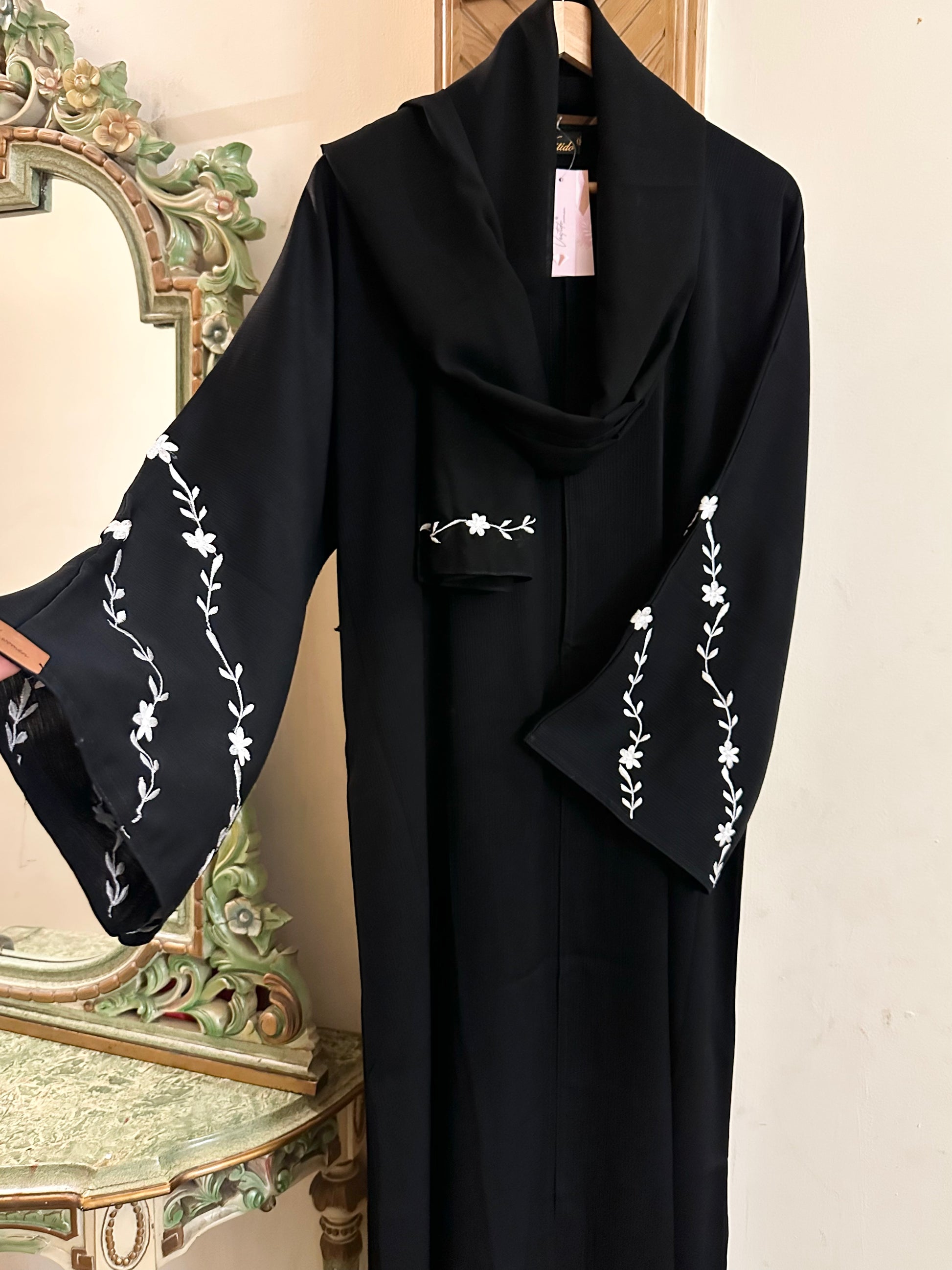 What You Get: Abaya with Scarf & Embroidered Sleeves .