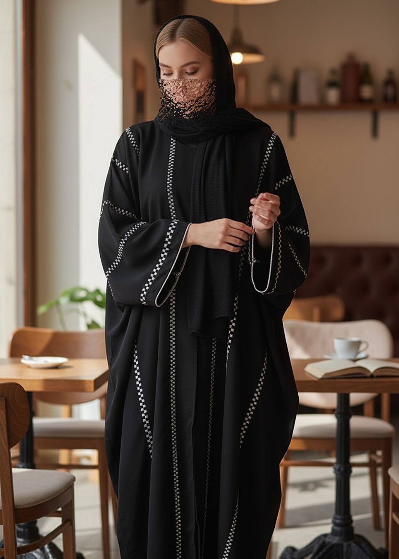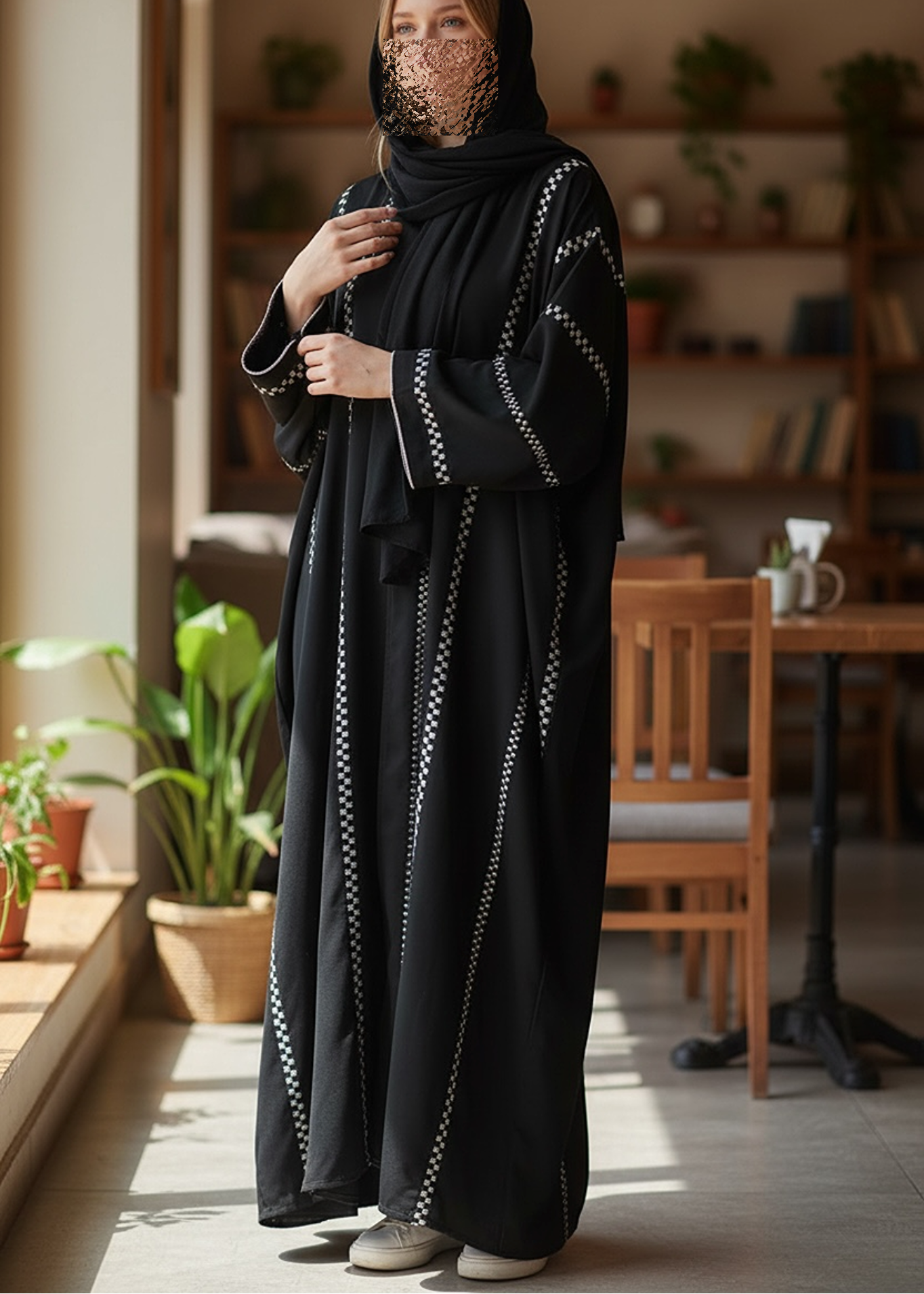 What You Get: Abaya WITHOUT scarf & Allover Embroidered stripe .