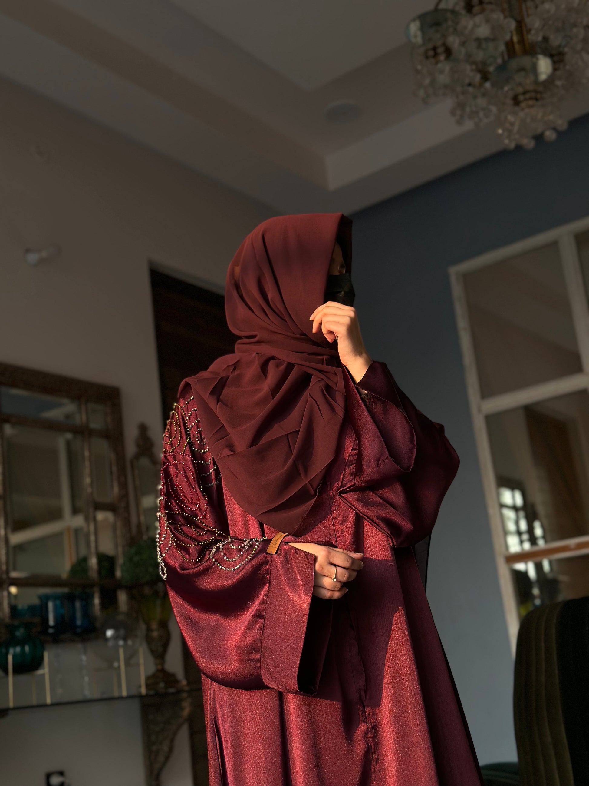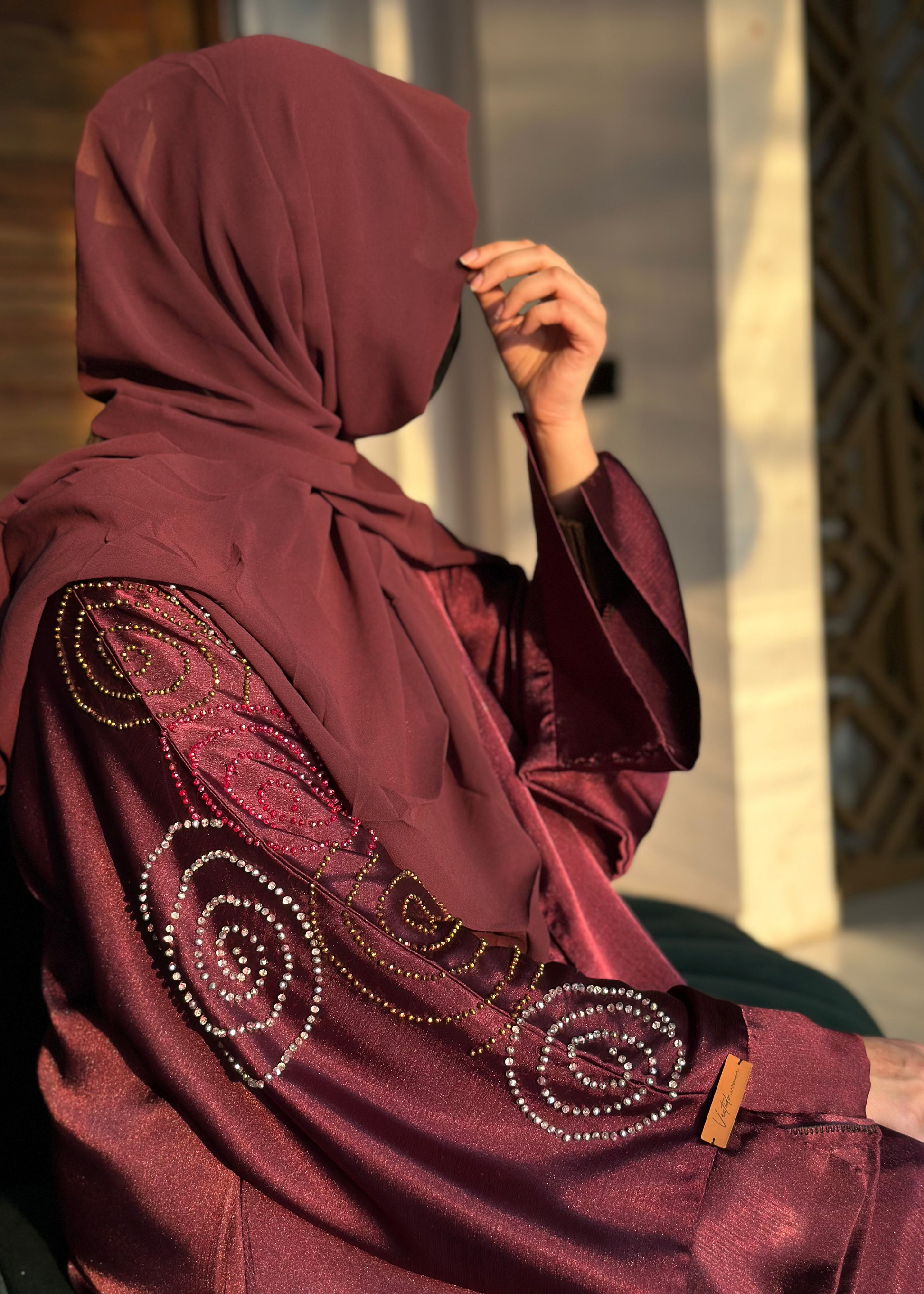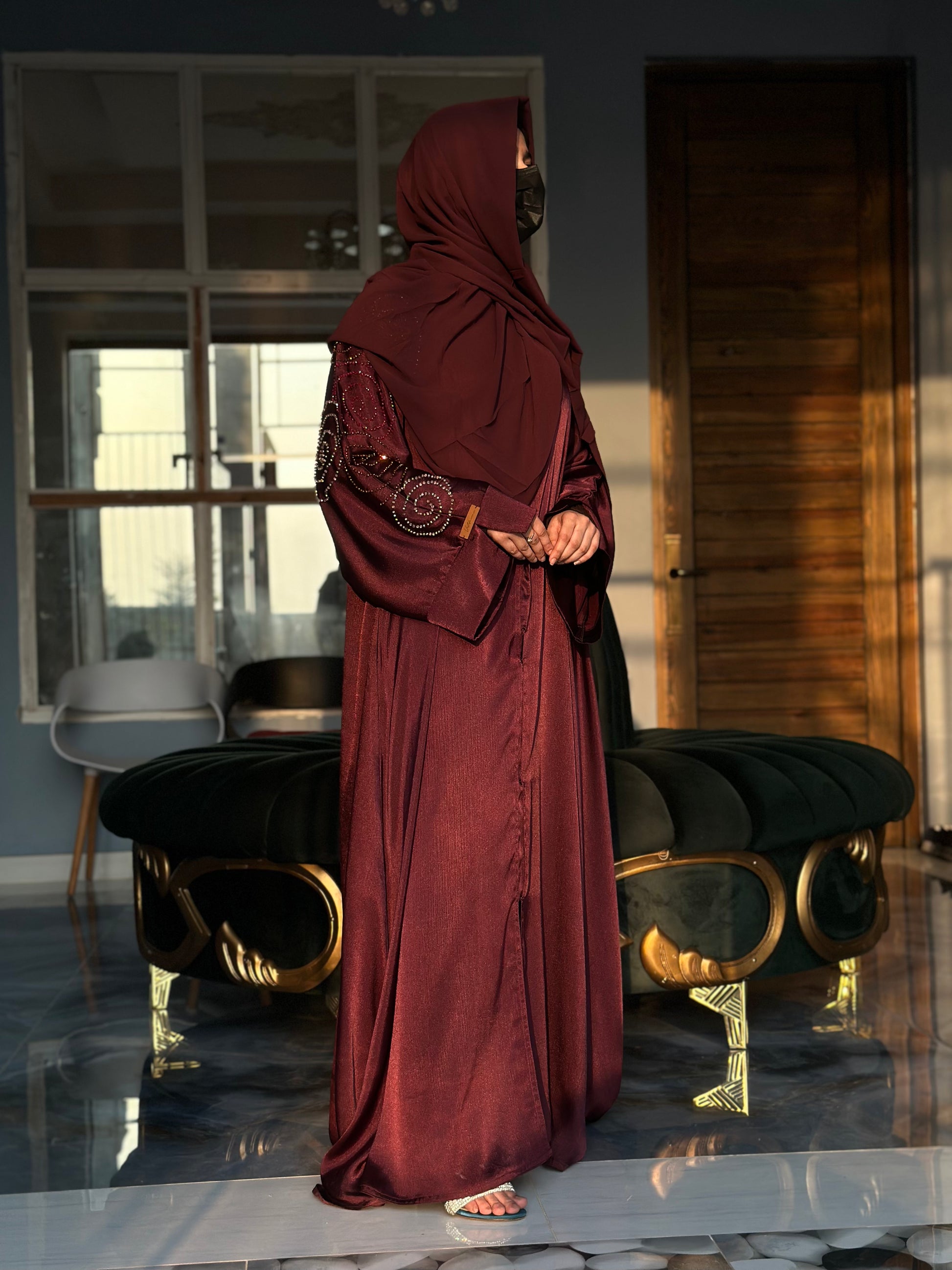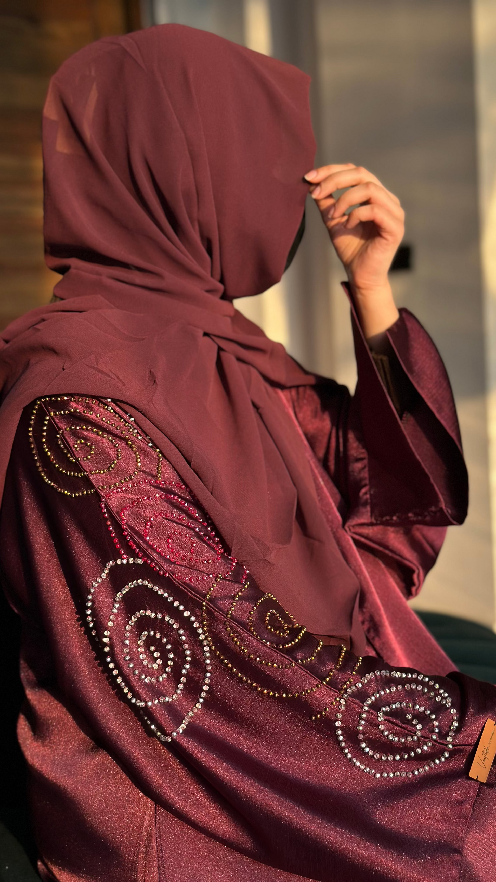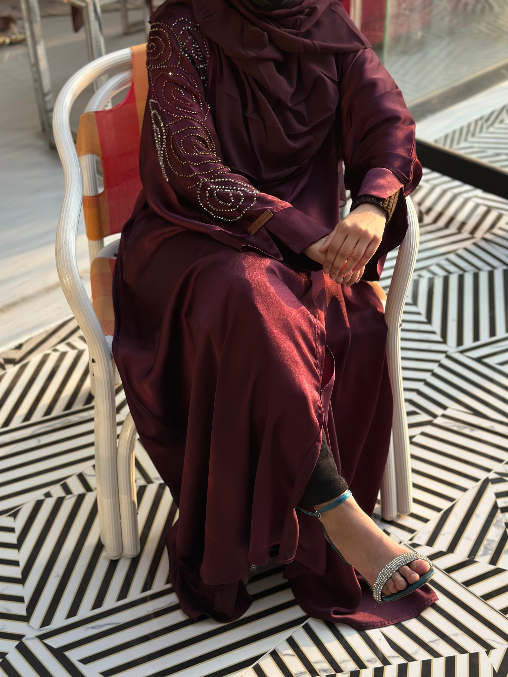 Product Features: Hand embellished Front open Abaya with Titch Button.