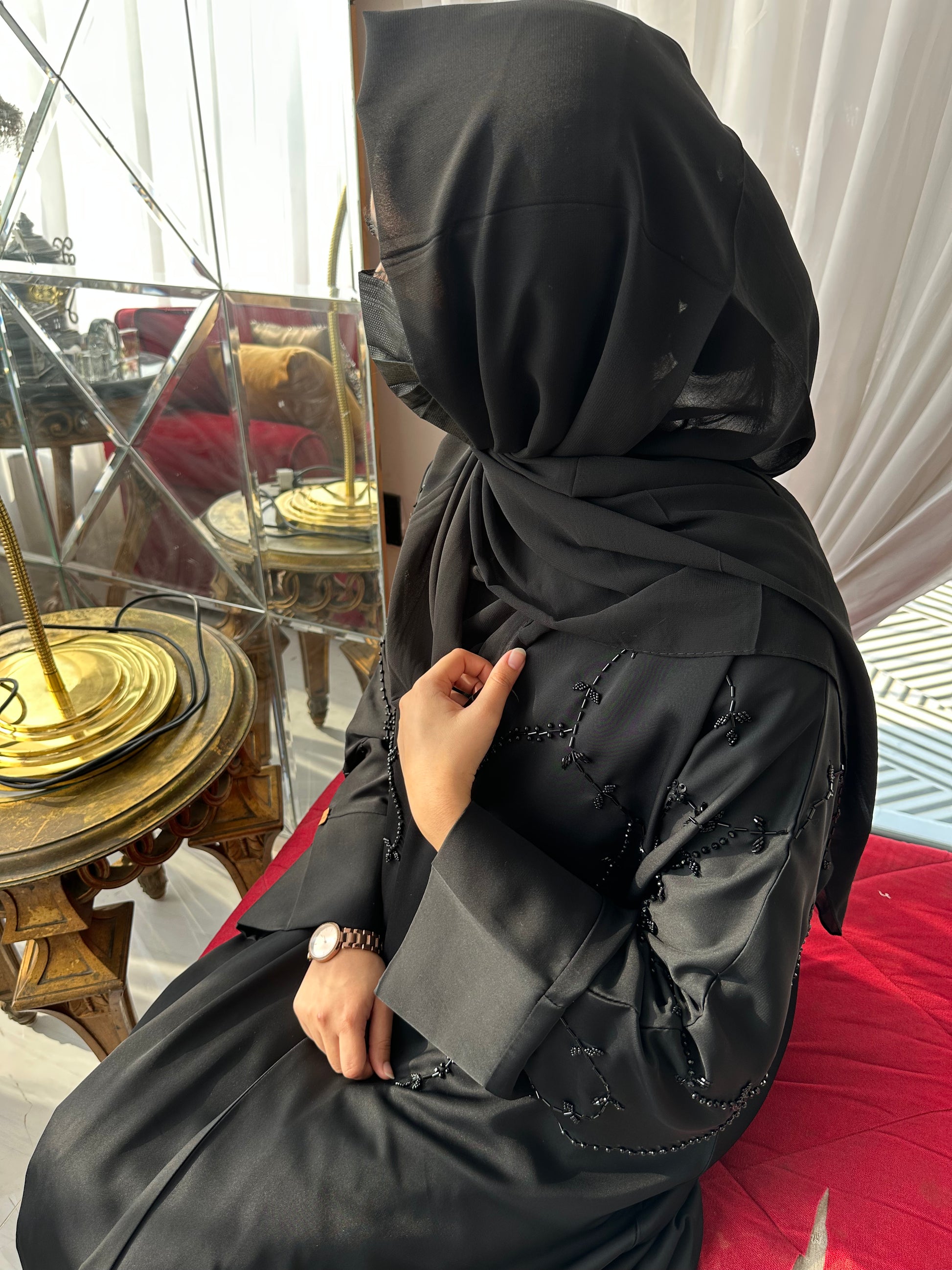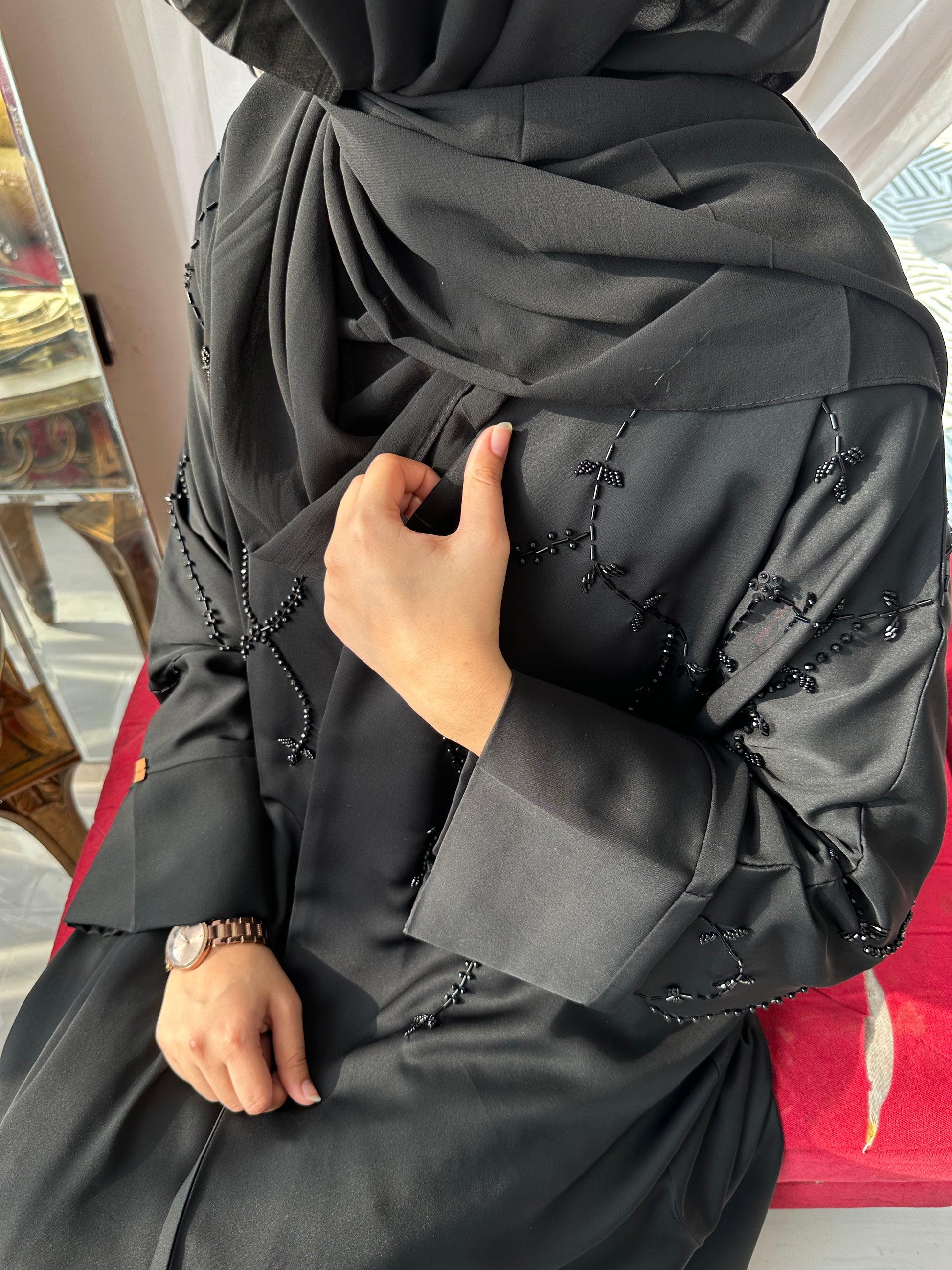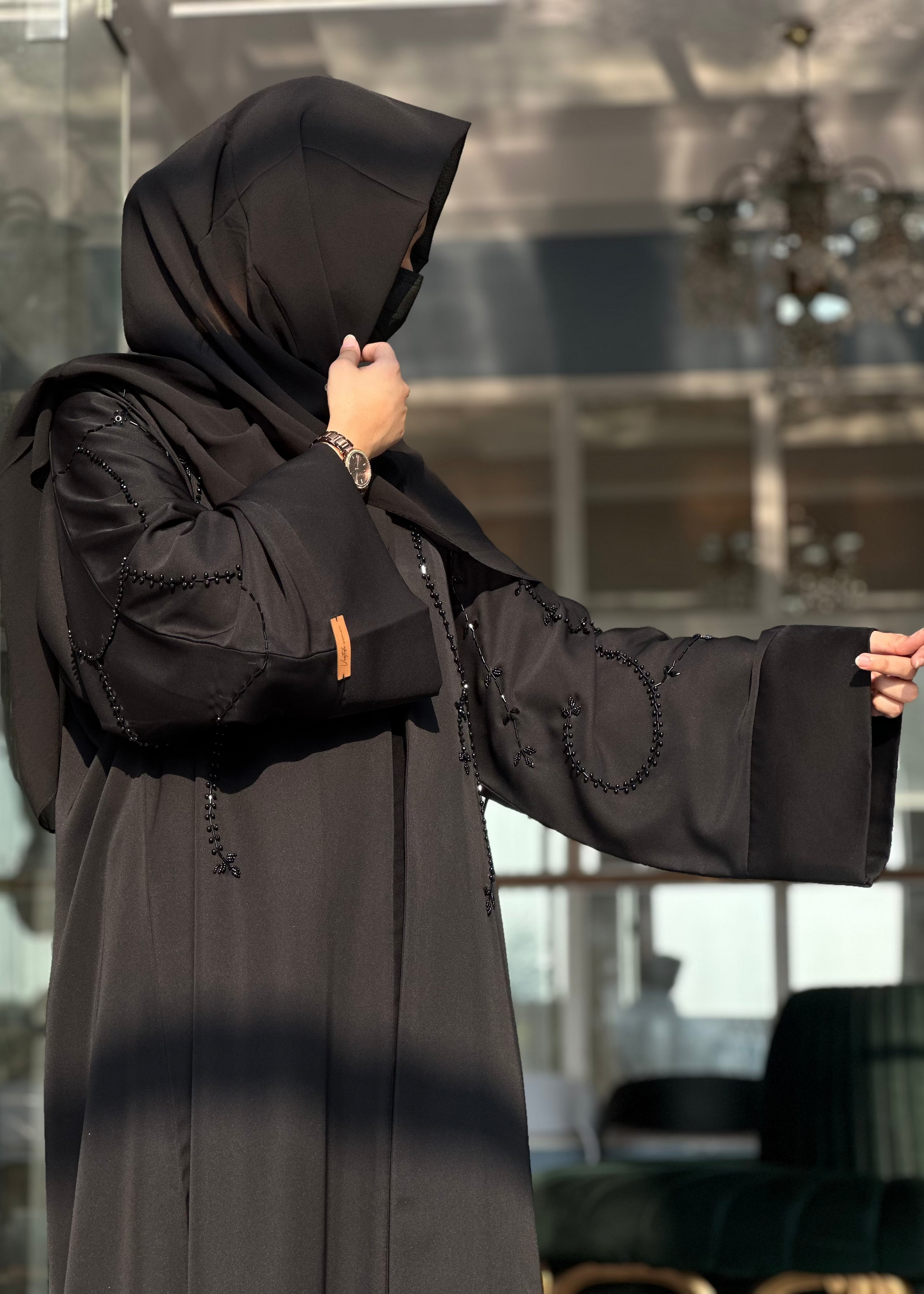Product Features: Hand embellished Front open Abaya with invisible stitch and Titch Button.