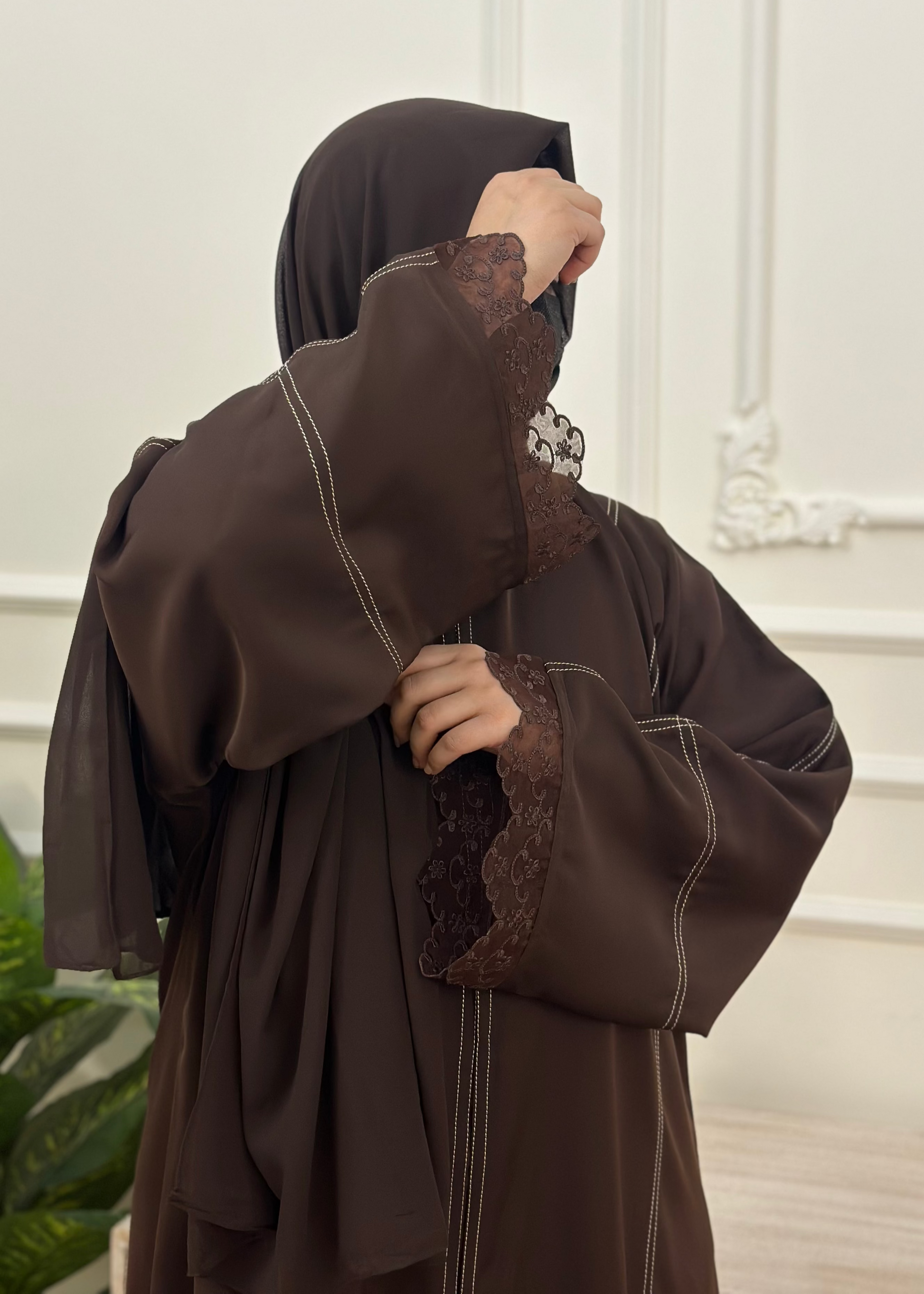 What You Get: Lace Sleves & Anchor Stitch Abaya with scarf
